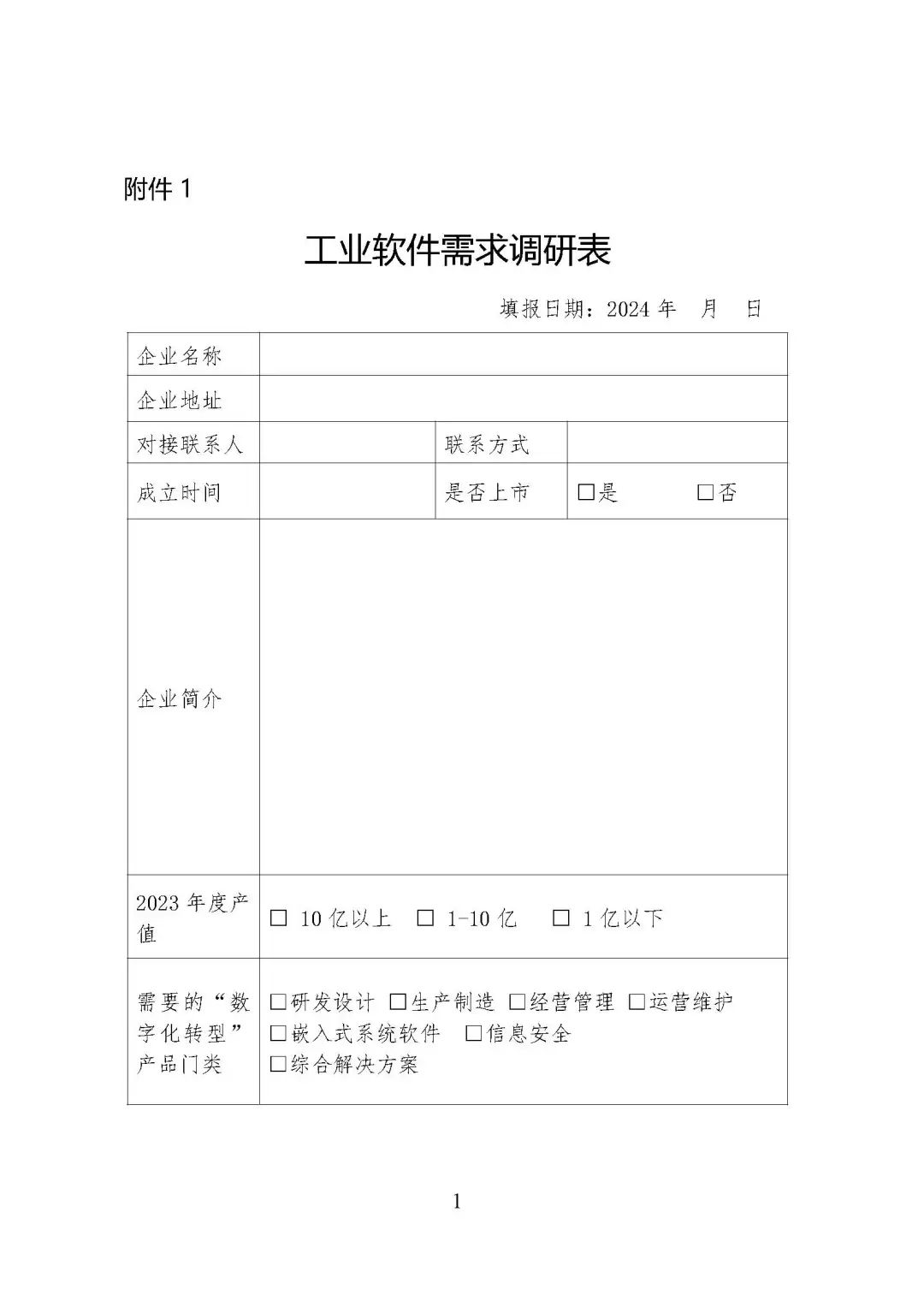 1、制造业企业工业软件需求调研重点面向 2023年产值超过1亿元的制造业企业和省级以上专精特新企业。