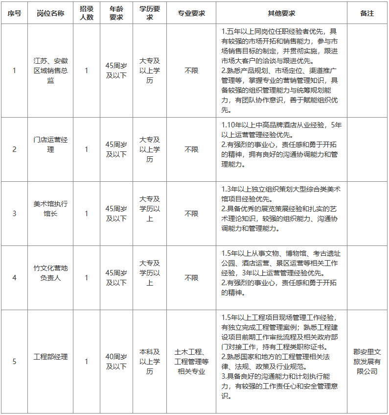 现场报名:自本公告发布之日起至2024年4月16日17:00截止。应聘人员持户口本、身份证、学历证书、学位证书、职称证书、职业(执业)资格证书、主要获奖证书及其他相关证明材料的原件和复印件1份、1寸照片1张至德清县舞阳街道 云岫南路601号德清莫干山亚朵酒店7楼文化旅游控股有限公司综合管理部。