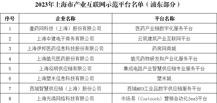 【榜上有名】2023年上海市产业互联网示范平台名单公布,浦东8家企业上榜