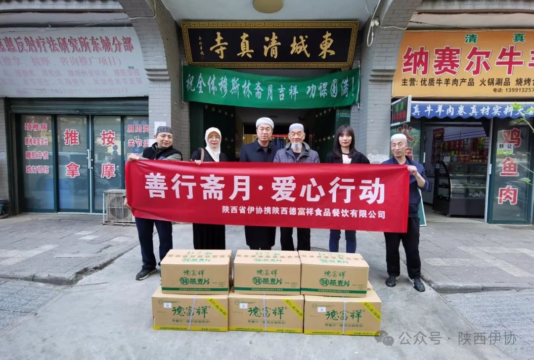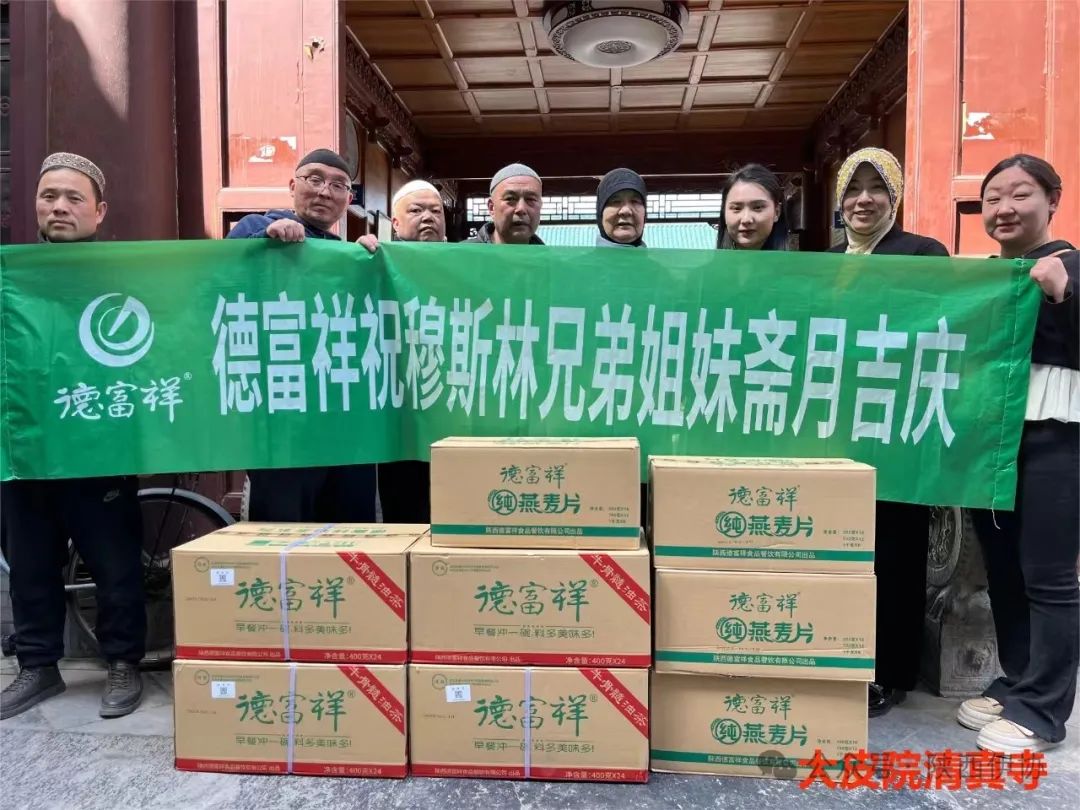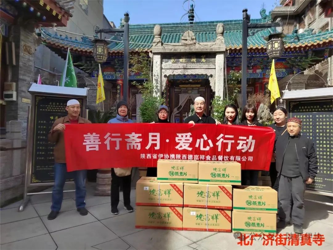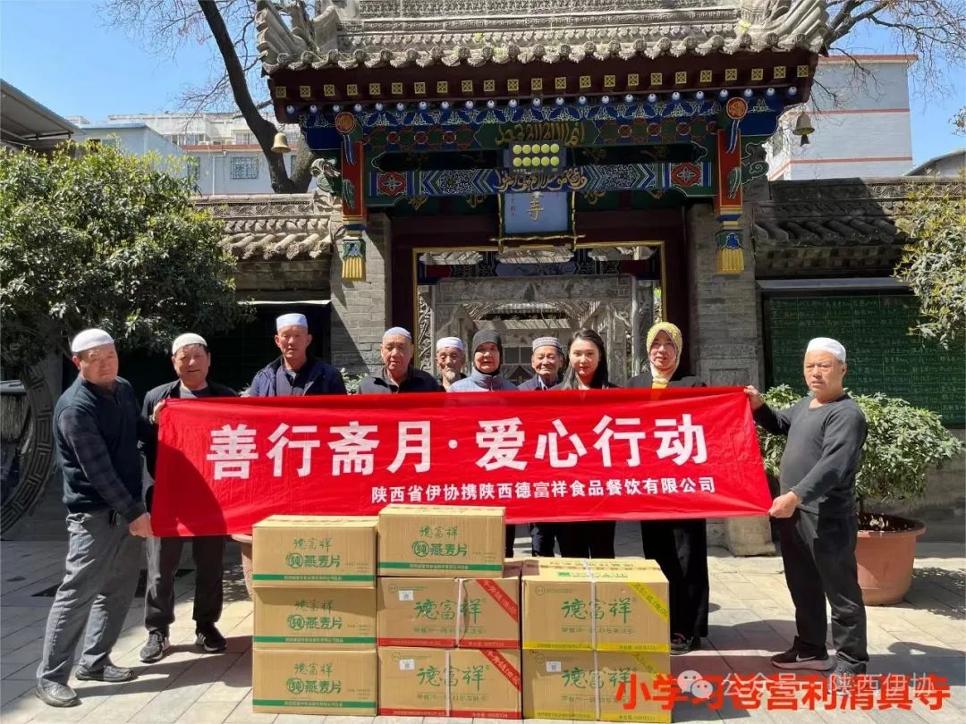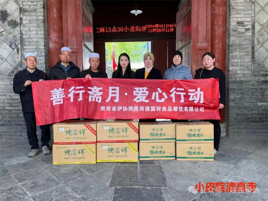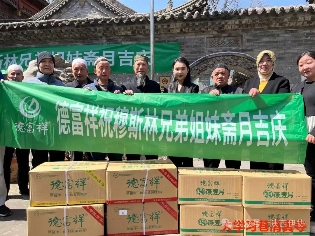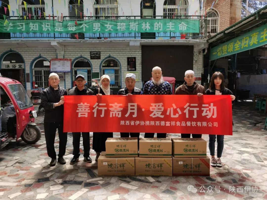 在吉庆的“莱麦丹”斋月,陕西省伊斯兰教协会偕陕西德富祥食品公司开展“善行斋月·爱心行动”活动,为西安地区22座清真寺送去了德富祥公司产品油茶、燕麦片168箱,把企业的慈善爱心送达全市穆斯林同胞,祝福穆斯林兄弟姐妹们度过一个团结、祥和、吉庆幸福的斋月。