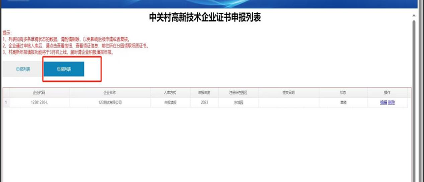 1.在村高新资质有效期内的、非2024年当年入库的企业应填报2023年度经营数据,与企业申请入库须填写的《企业基本情况信息表》内容一致。2.2024年入库的企业已填报2023年度发展情况,无需填报年报。3.企业在村高新资质已过期或到期前三个月内登录系统,应重新申请入库,获批后即默认已填报年度发展情况,无须填报年报。5.市科委、中关村管委会咨询电话88827151。(1)北京市科委、中关村管委会网站https://fwy.kw.beijing.gov.cn/zhfw/(2)国际科技创新中心网络服务平台https://www.ncsti.gov.cn/ssjgy/