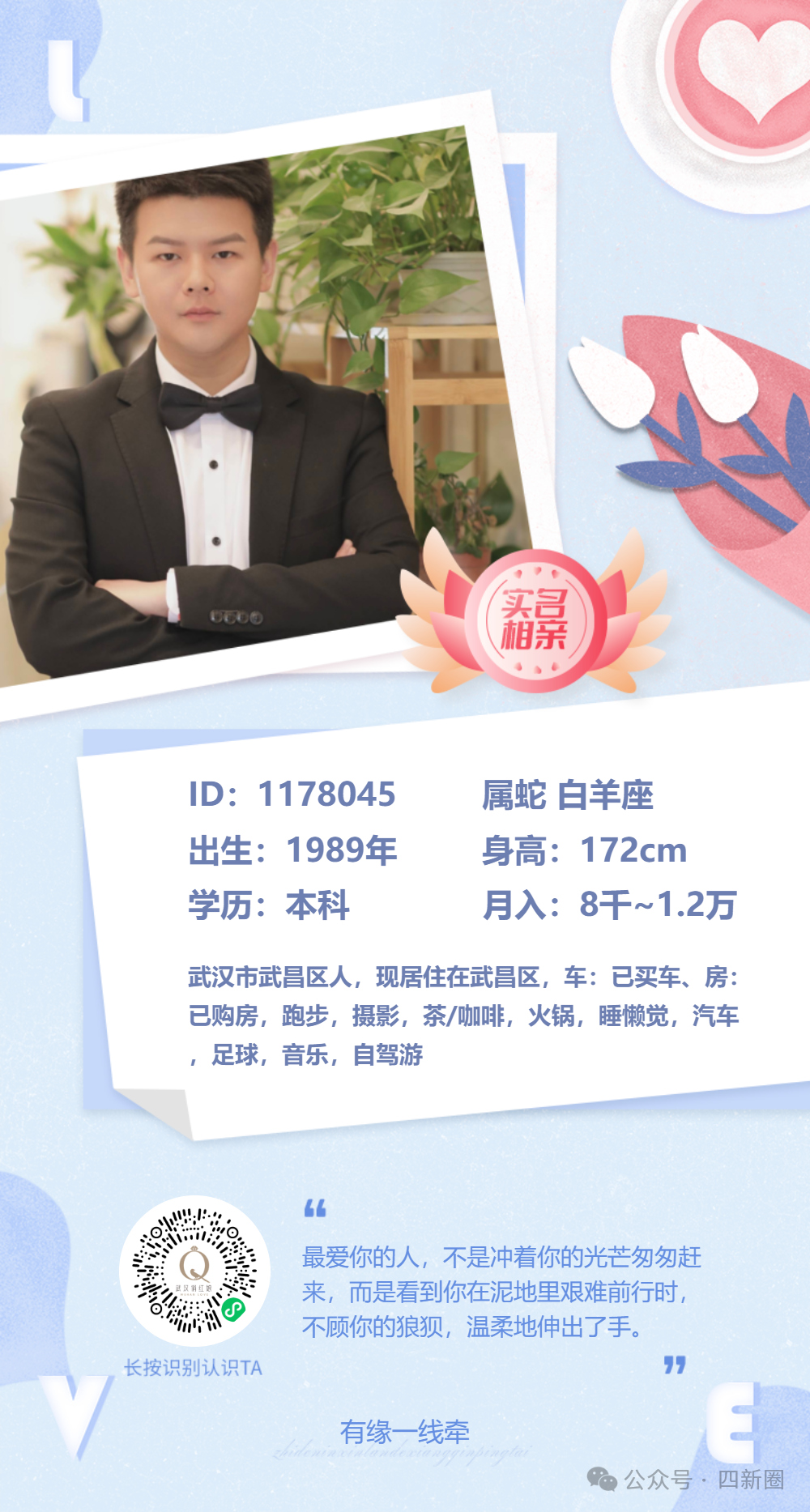 在“武汉俏红娘”小程序搜索嘉宾ID