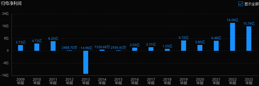 公司历史业绩波动明显,最近几年利润稳步上涨,23年利润逼近历史最高水平。