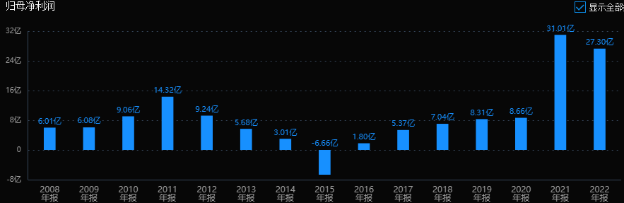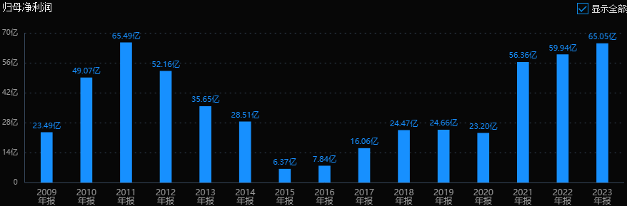 公司历史业绩堪忧,最近几年改善明显,利润保持在30亿上下。