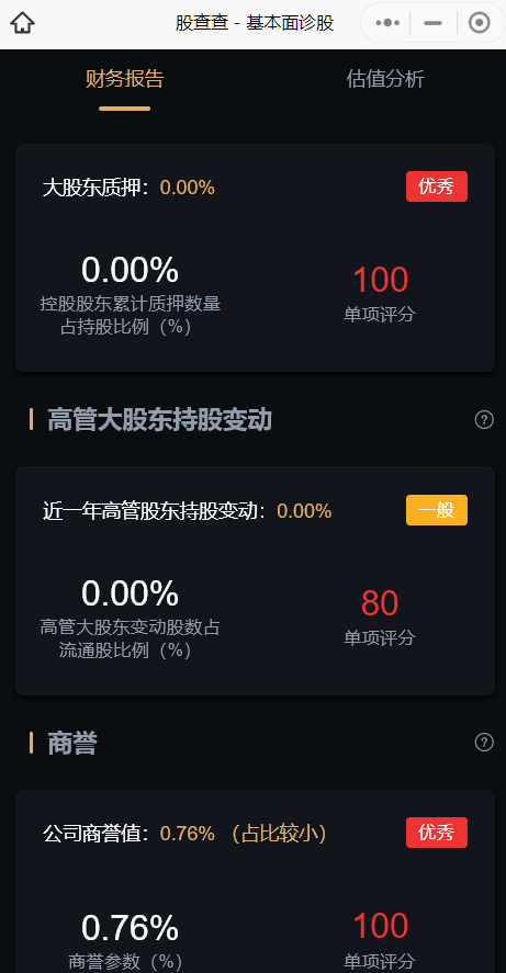 风险角度看,经营活动现金流三年总和 49.45%,表现优秀;公司商誉0.11%,占比小,可以忽略。无大股东质押,高管大股东增持0.83%。公司风险指标整体良好,无大风险。