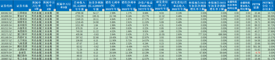今天接着梳理下工业金属里的铜板块。文章里的行业和个股数据都是截图于《万能表》和“股查查系统”。