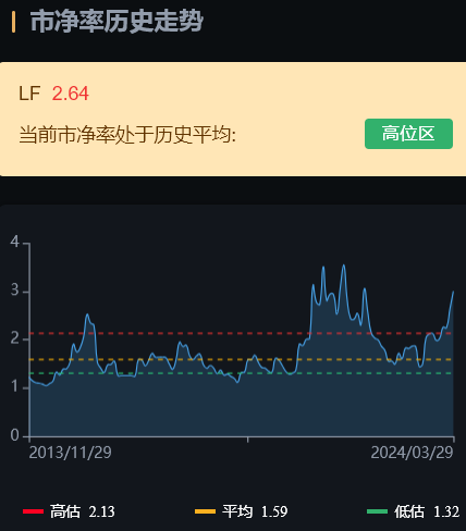 最后看估值情况,滚动市盈率12.03倍,市净率1.58倍,当前市盈率(TTM)、市净率(LF)均处于历史平均:低位区。