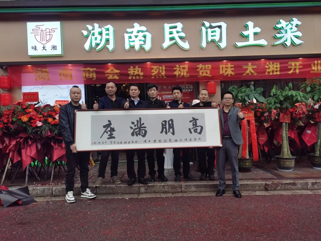 4月8日上午,味太湘餐饮店门前彩旗飘飘,锣鼓喧天,一派喜庆祥和的景象。湖南商会会长蒋勇携各位副会长和秘书长一同受邀参加开业盛典,共同见证这一美食界的盛事。在开业仪式上,湖南商会秘书处特意献上“高朋满座”的牌匾,寓意着味太湘餐饮店未来生意兴隆,顾客盈门。这份贺礼不仅是对味太湘餐饮店的祝福,更是对其美食品质的认可与期待。