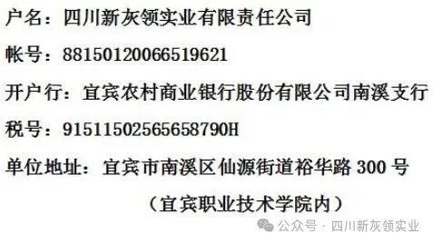 地 址:宜宾市南溪区仙源街道裕华路300号宜宾职业技术学院丝路楼302四川新灰领实业有限责任公司
