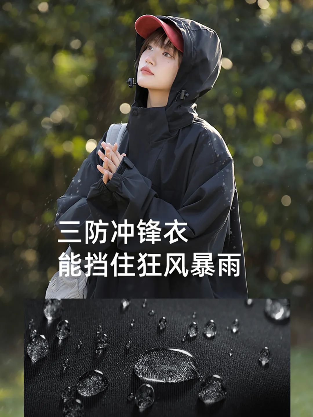 任你天气如何变化,电闪雷鸣,冲锋衣自带防风防水buff,随便套上就能轻松出门!