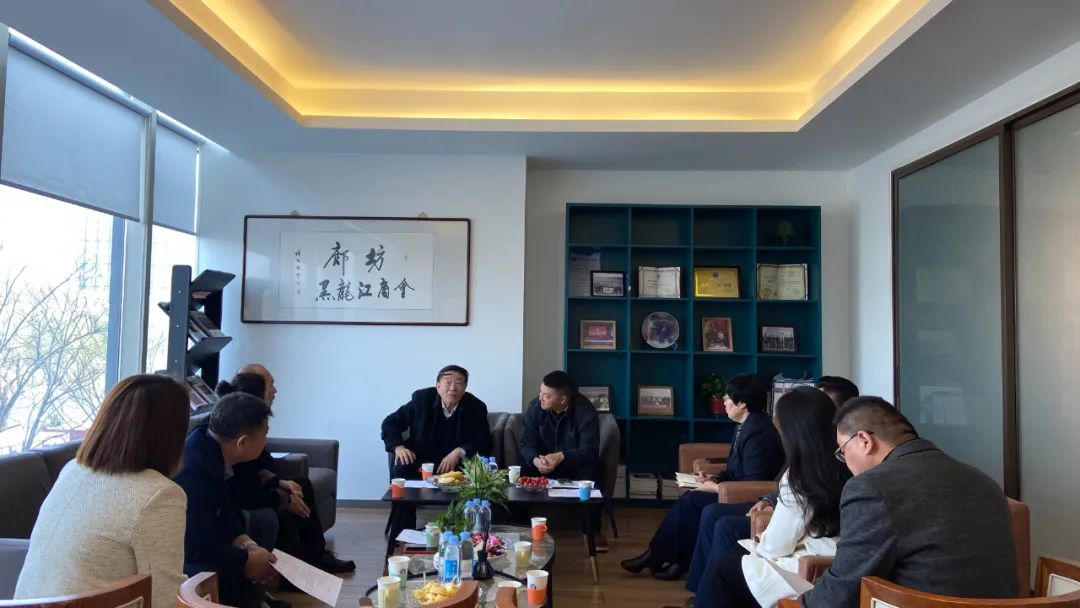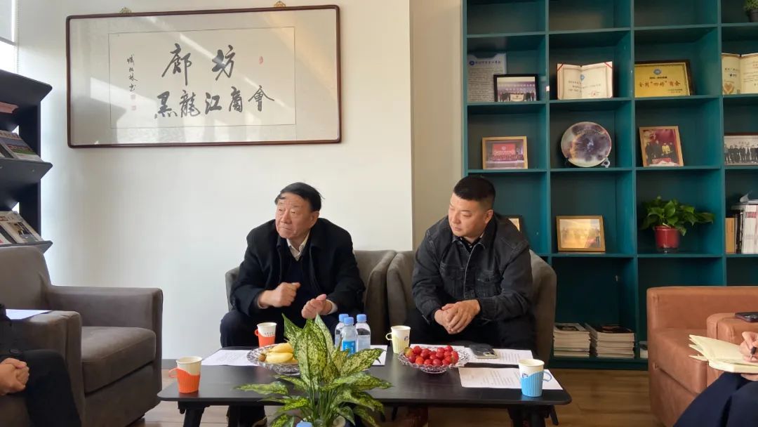 4月3日上午,中国民办教育协会会长王佐书在北京黑龙江企业商会执行秘书长的陪同下,深入到廊坊市黑龙江商会调研指导工作。燕京职业技术学院党委书记薛树林、商会会长苏晓涛、秘书长刘晓梅、执行会长刘荣华、副会长徐俊阳等十余名涉教企业参加活动。