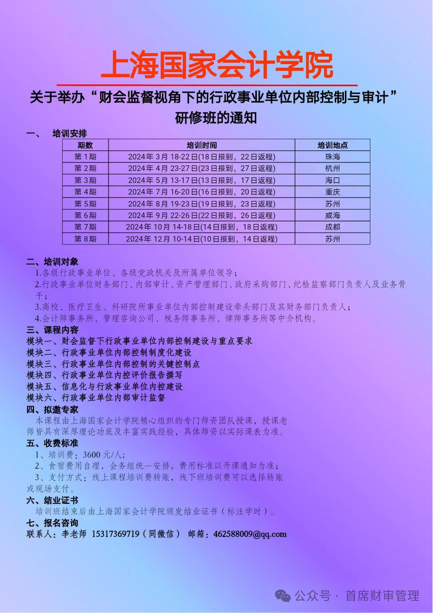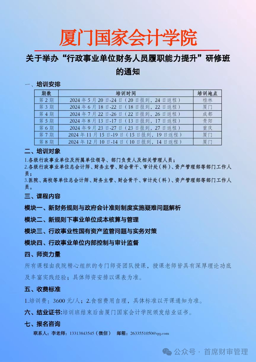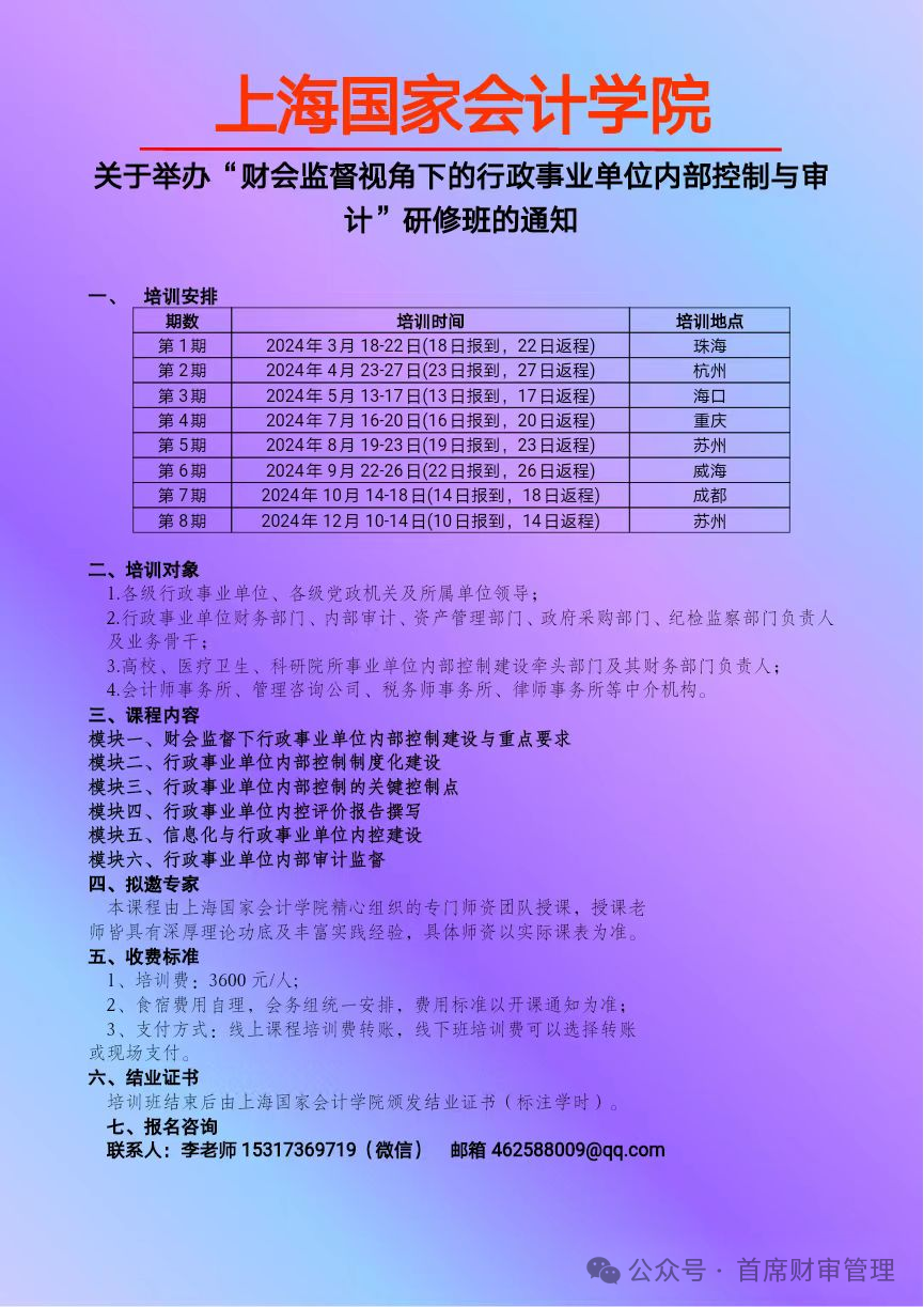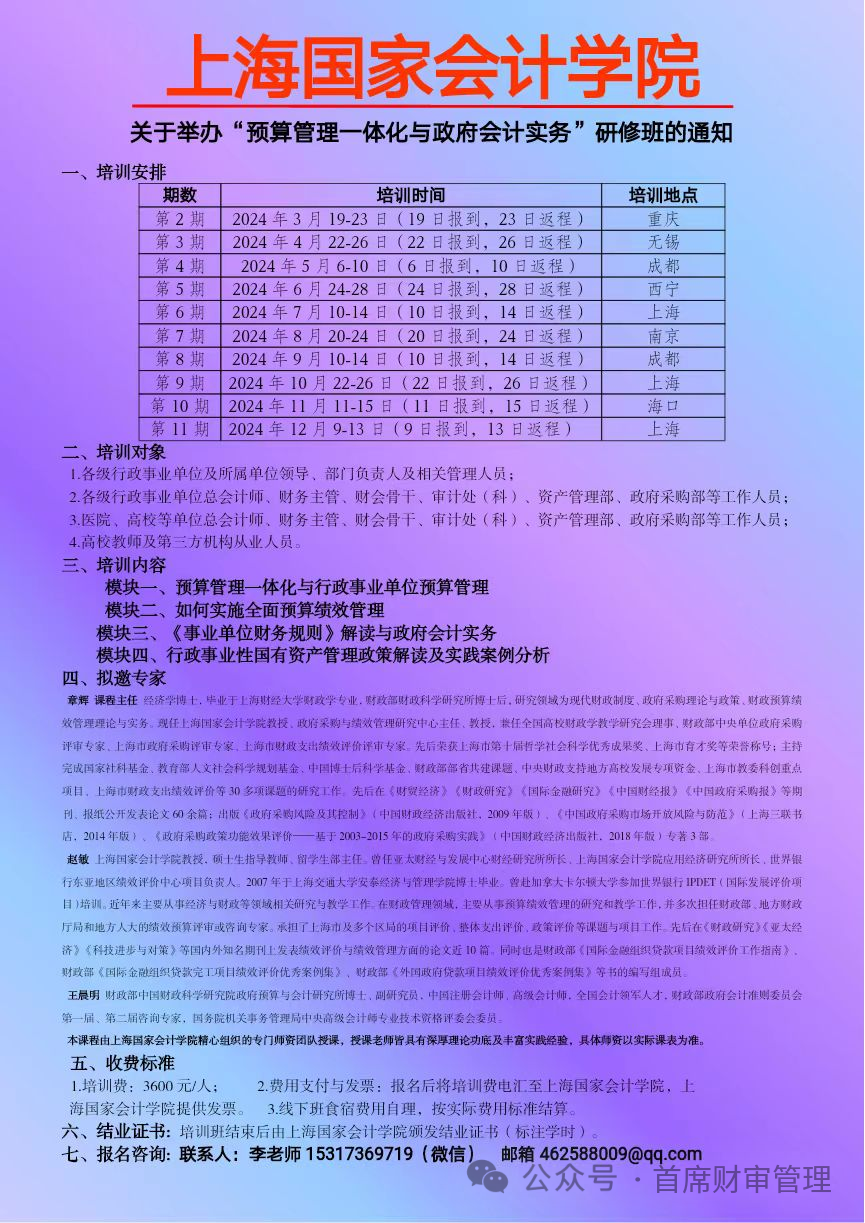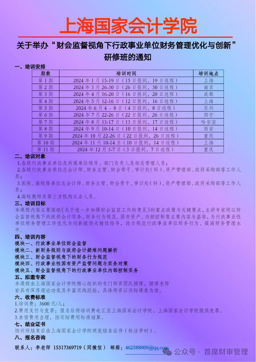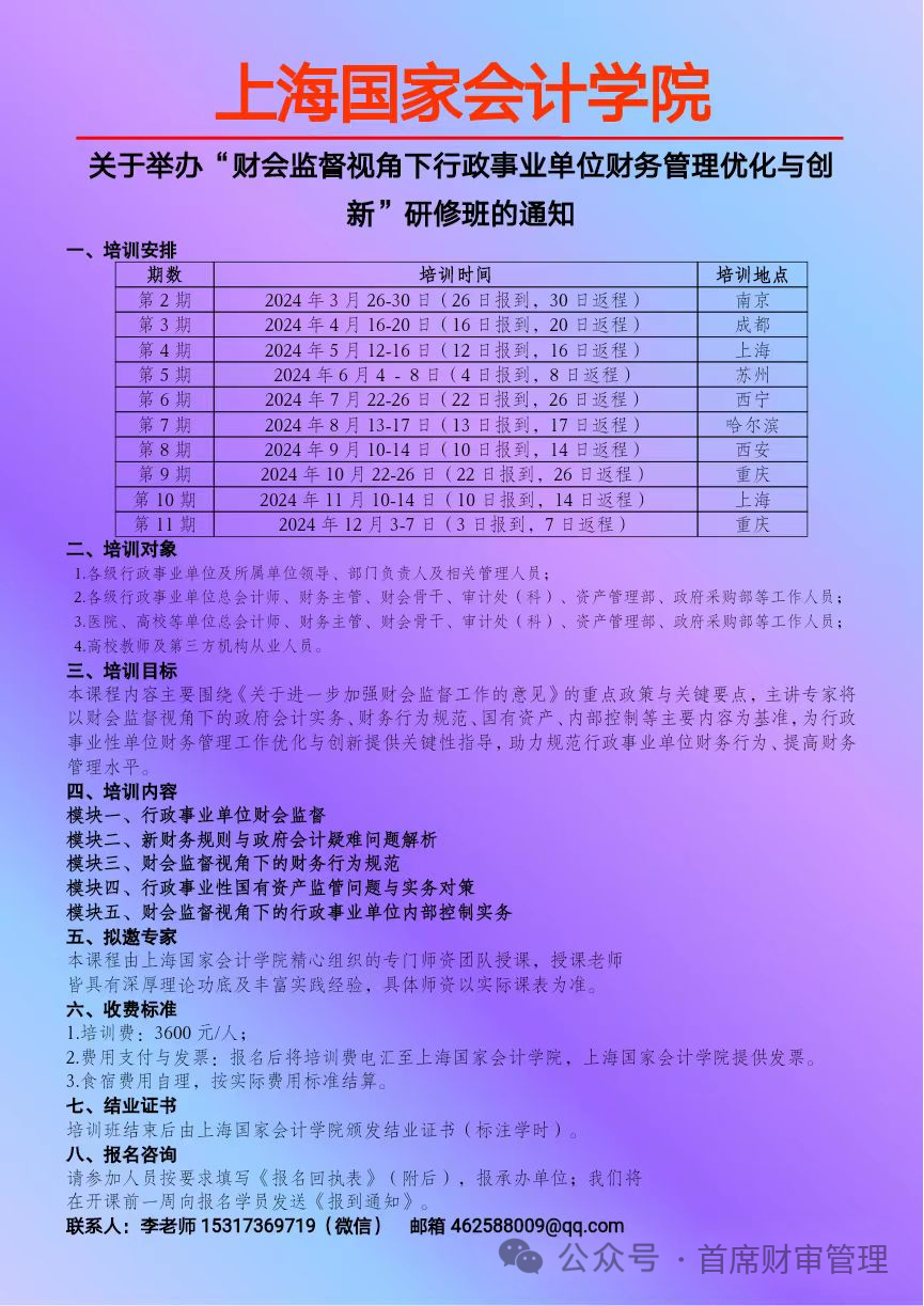 2024上半年举办 “财会监督下行政事业单位财务管理创新与专业能力提升” 系列培训班