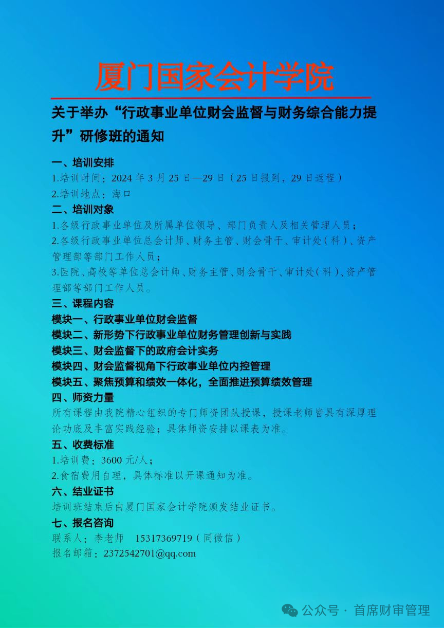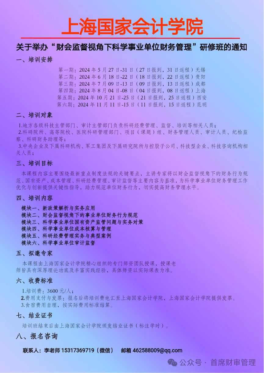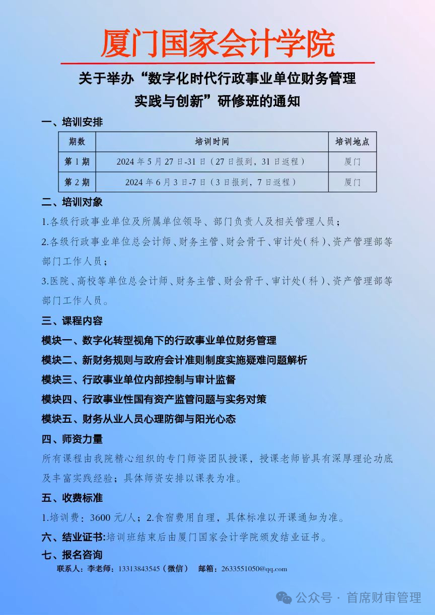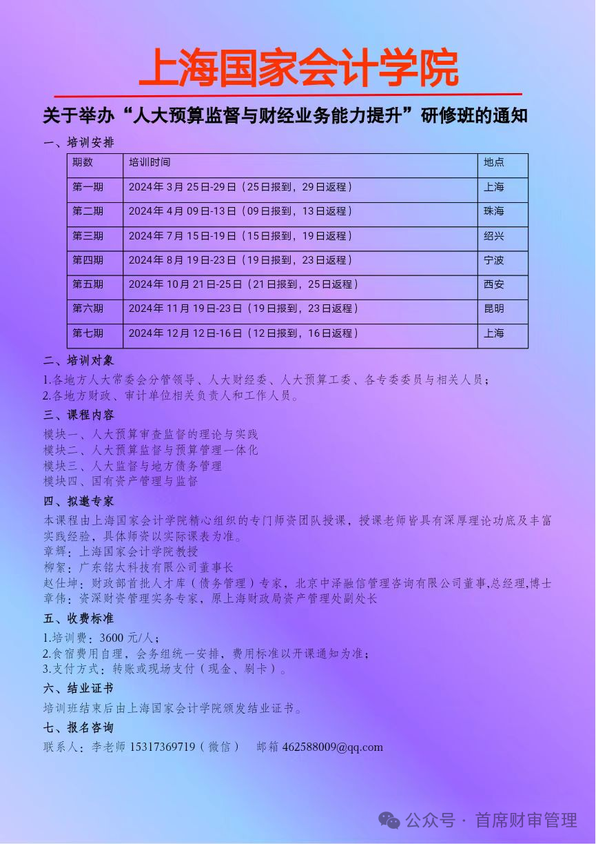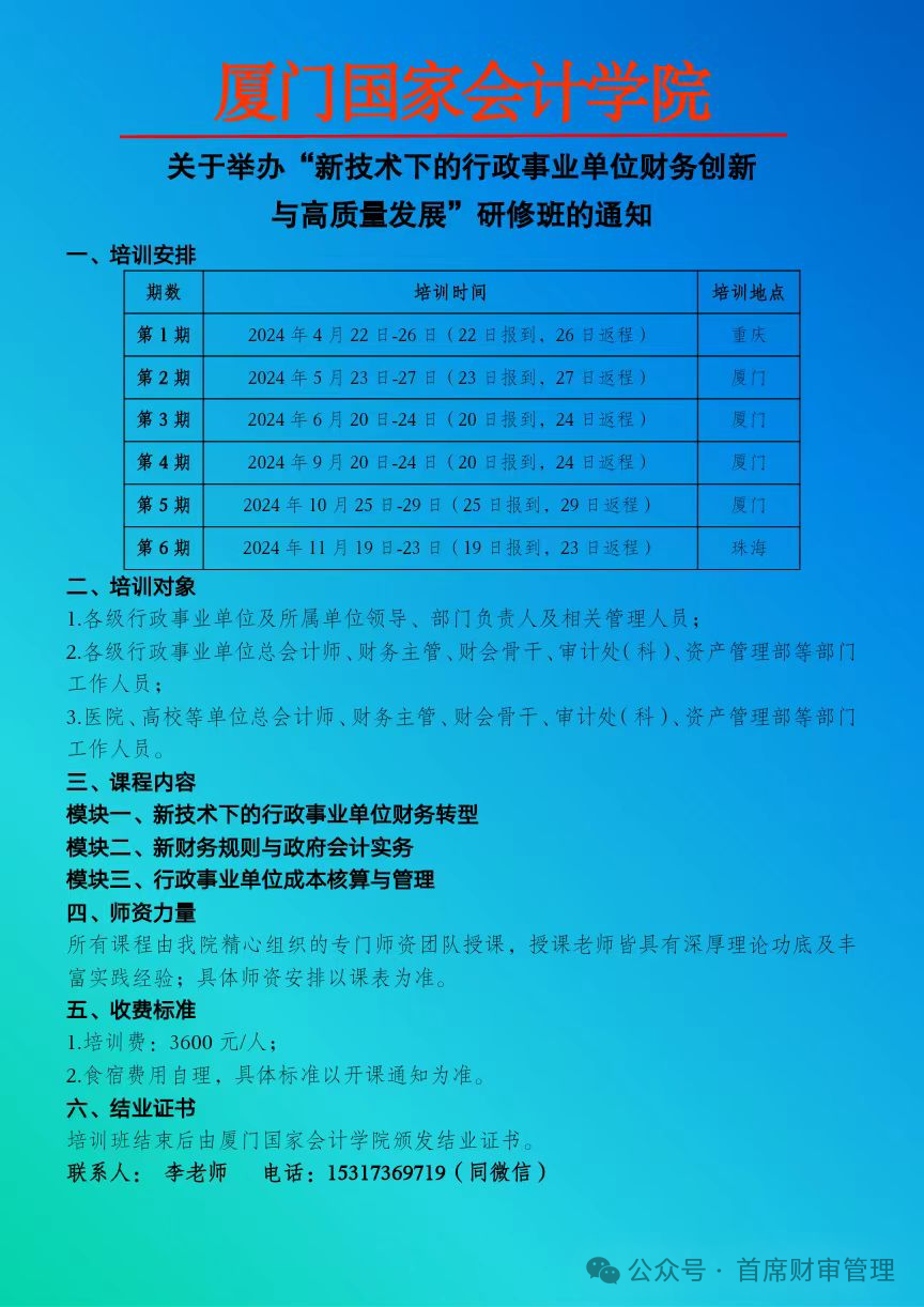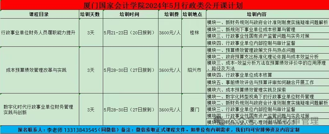 2024上半年举办 “财会监督下行政事业单位财务管理创新与专业能力提升” 系列培训班