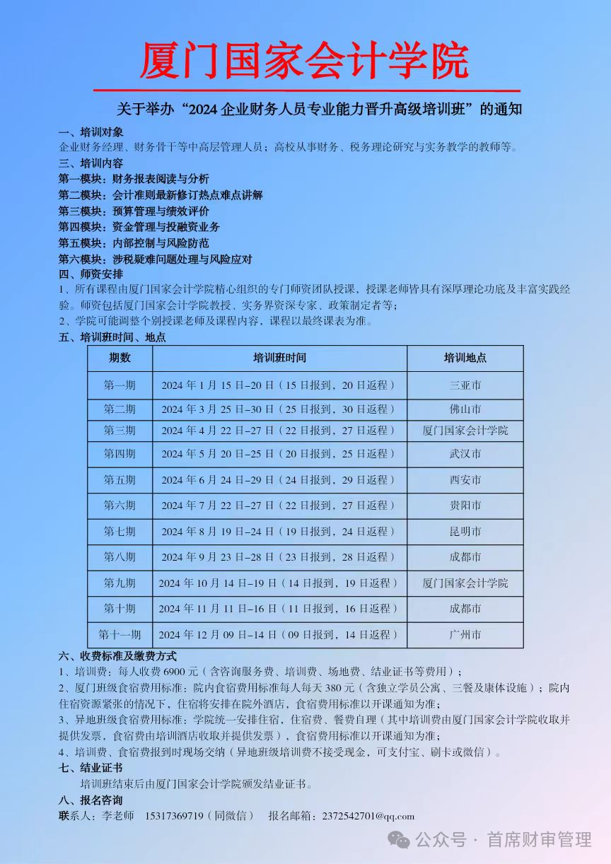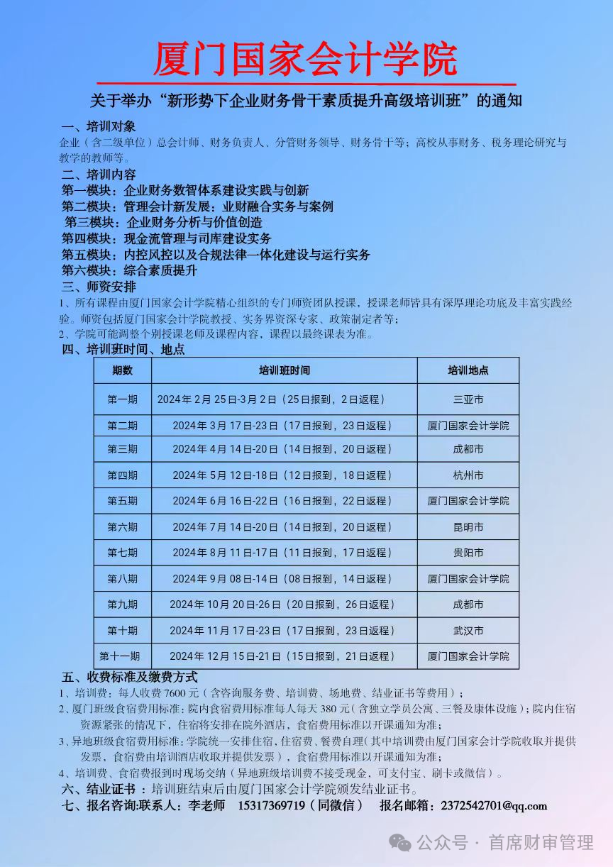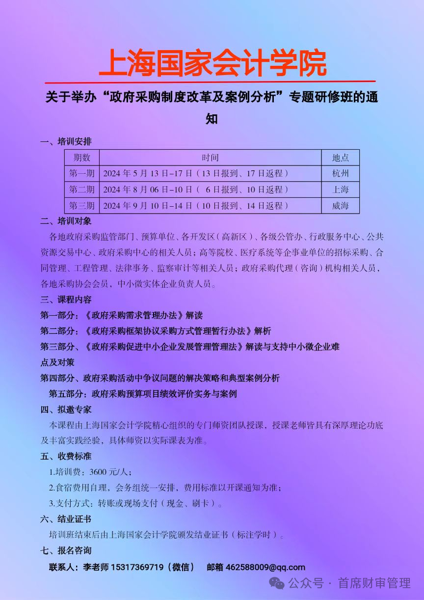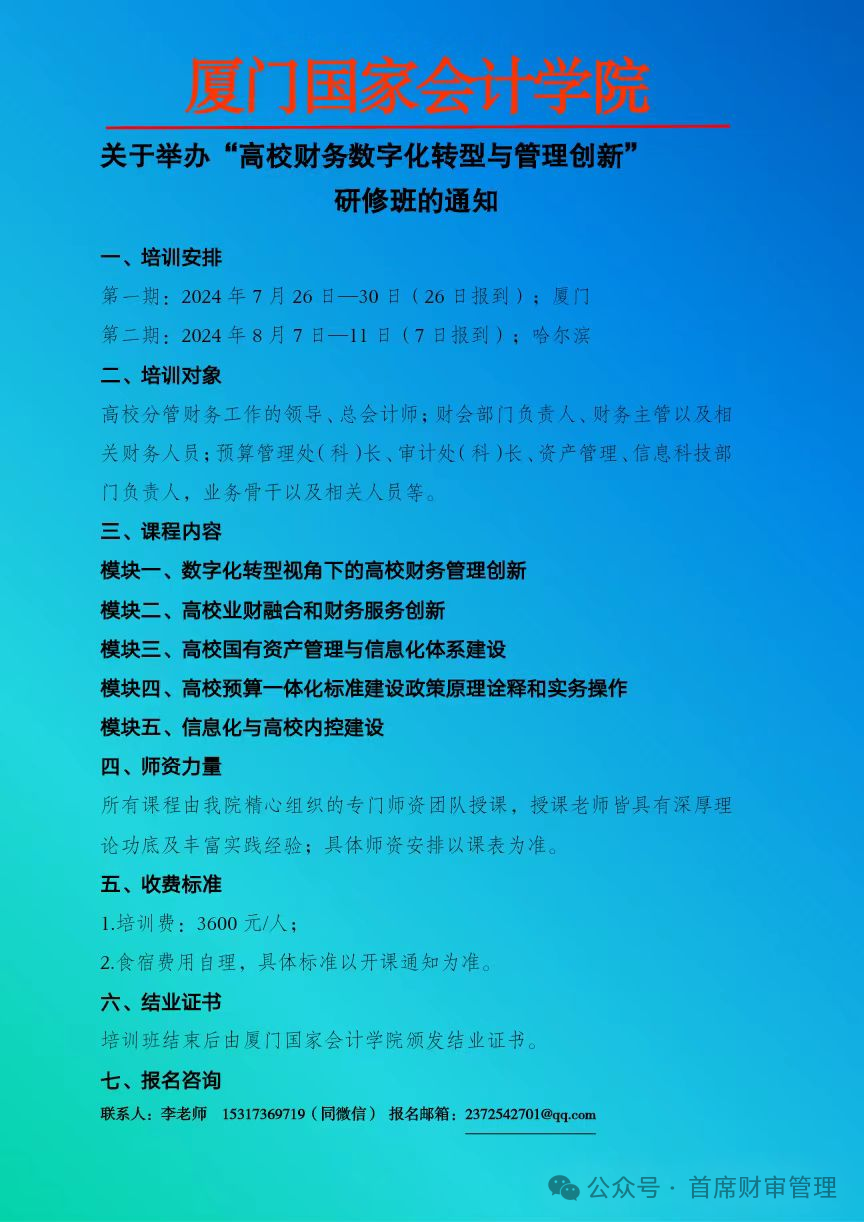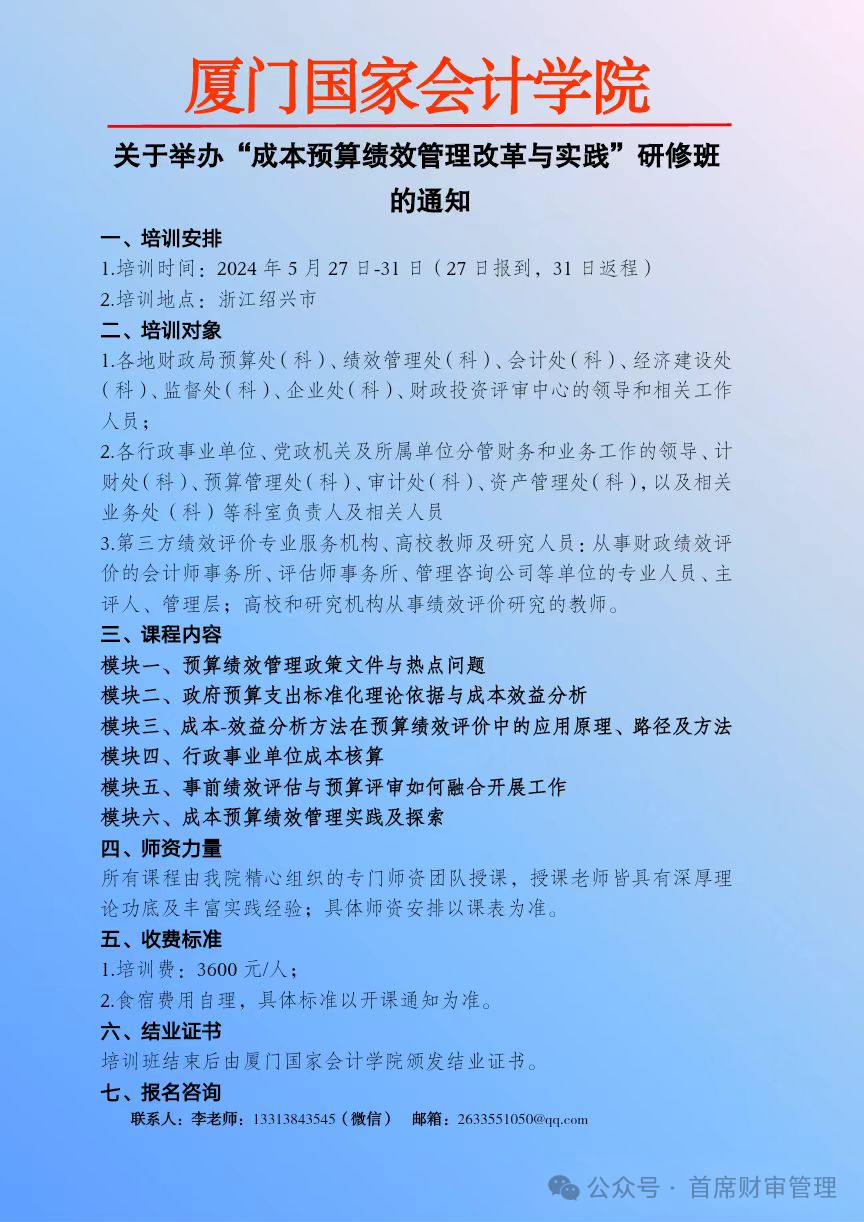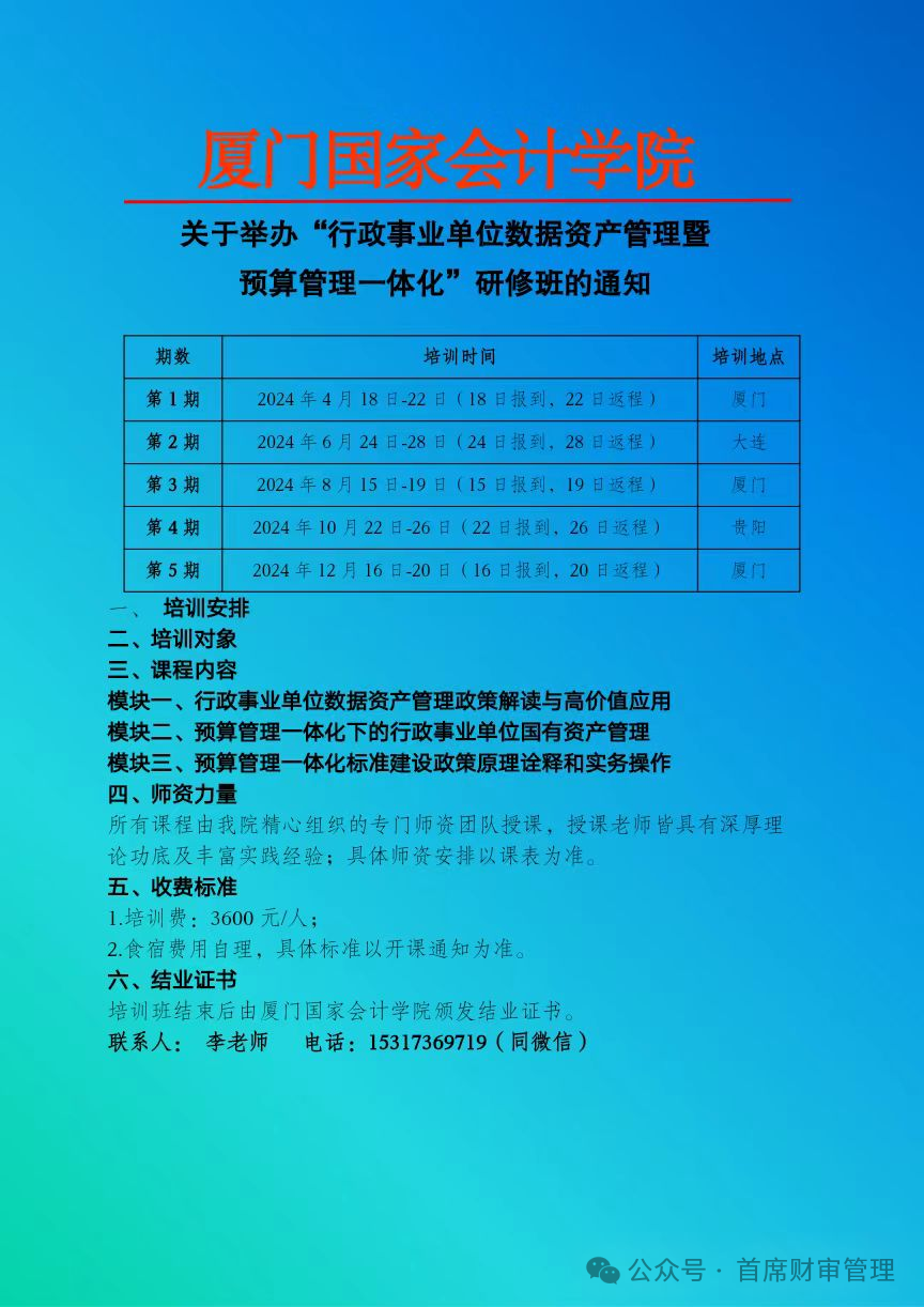 2024上半年举办 “财会监督下行政事业单位财务管理创新与专业能力提升” 系列培训班
