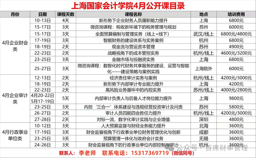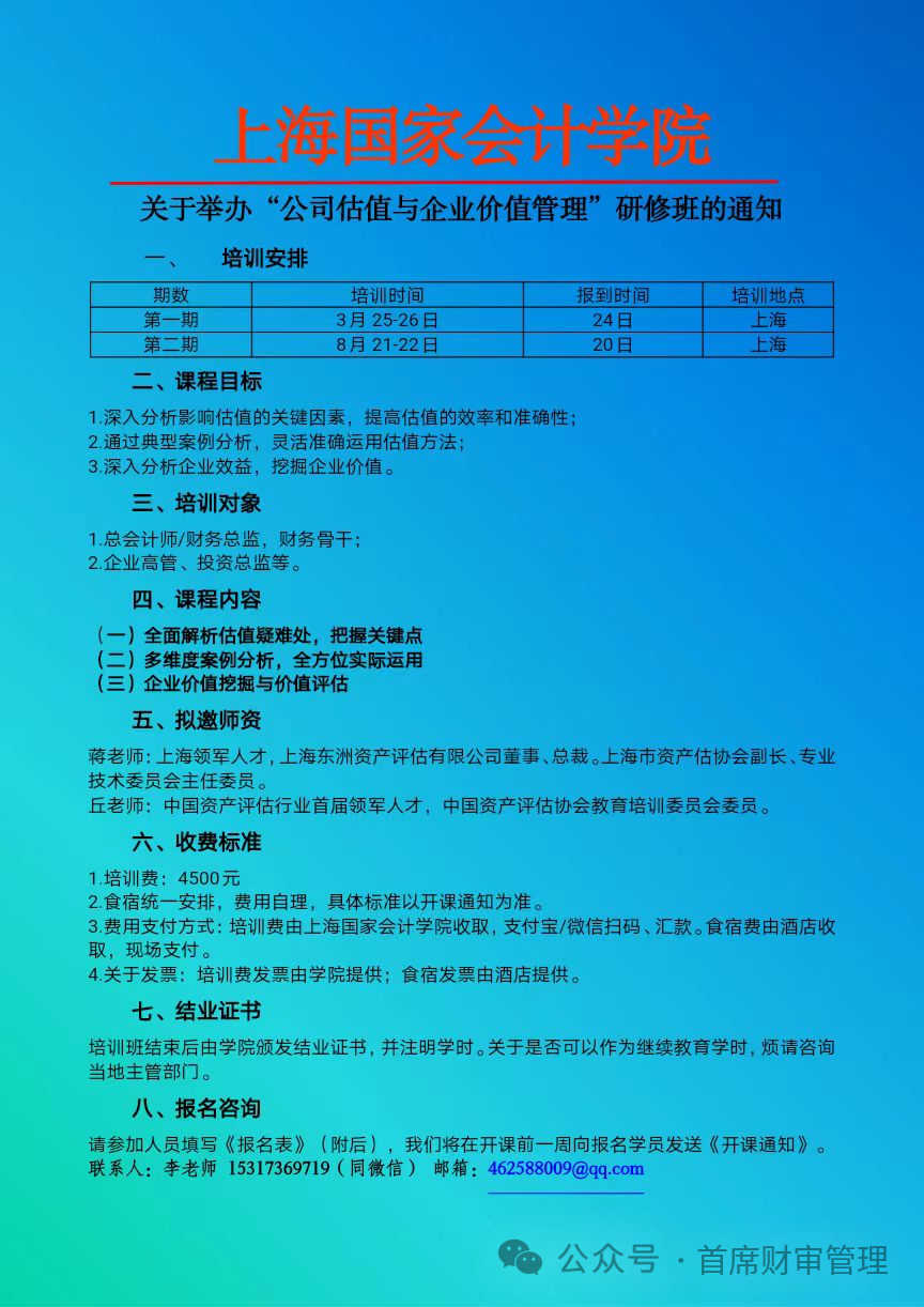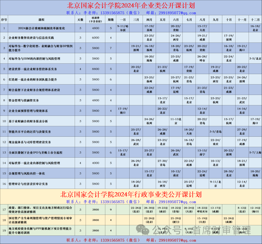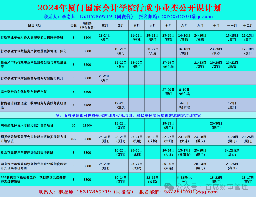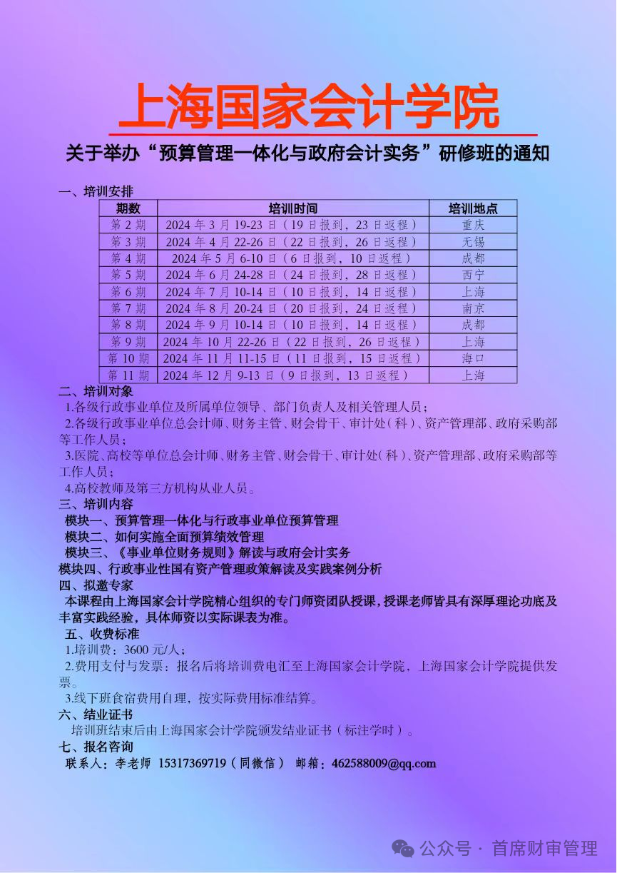 【上海国家会计学院】2024年行政事业单位培训计划表(最新)