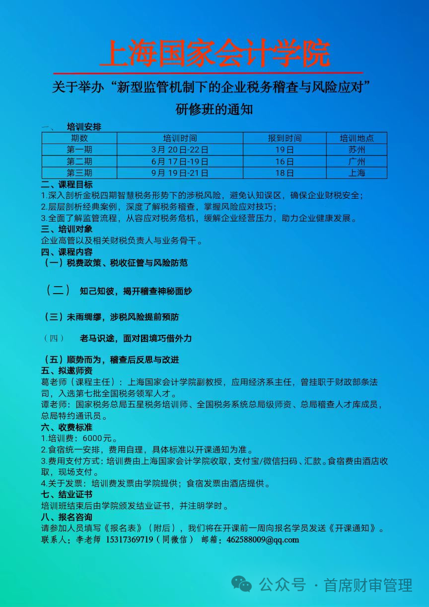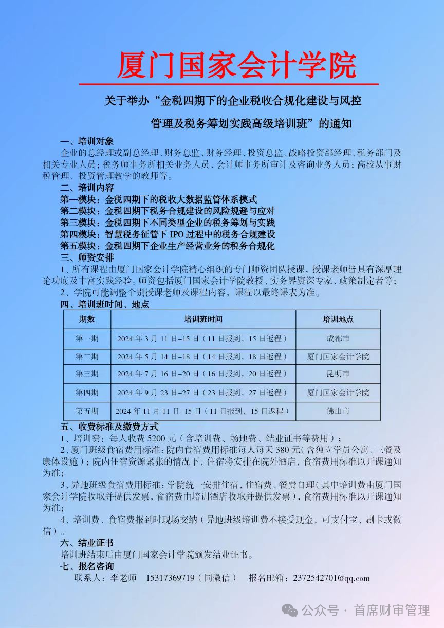 金税四期下的企业税收合规化建设与风控管理及税务筹划实践高级培训班