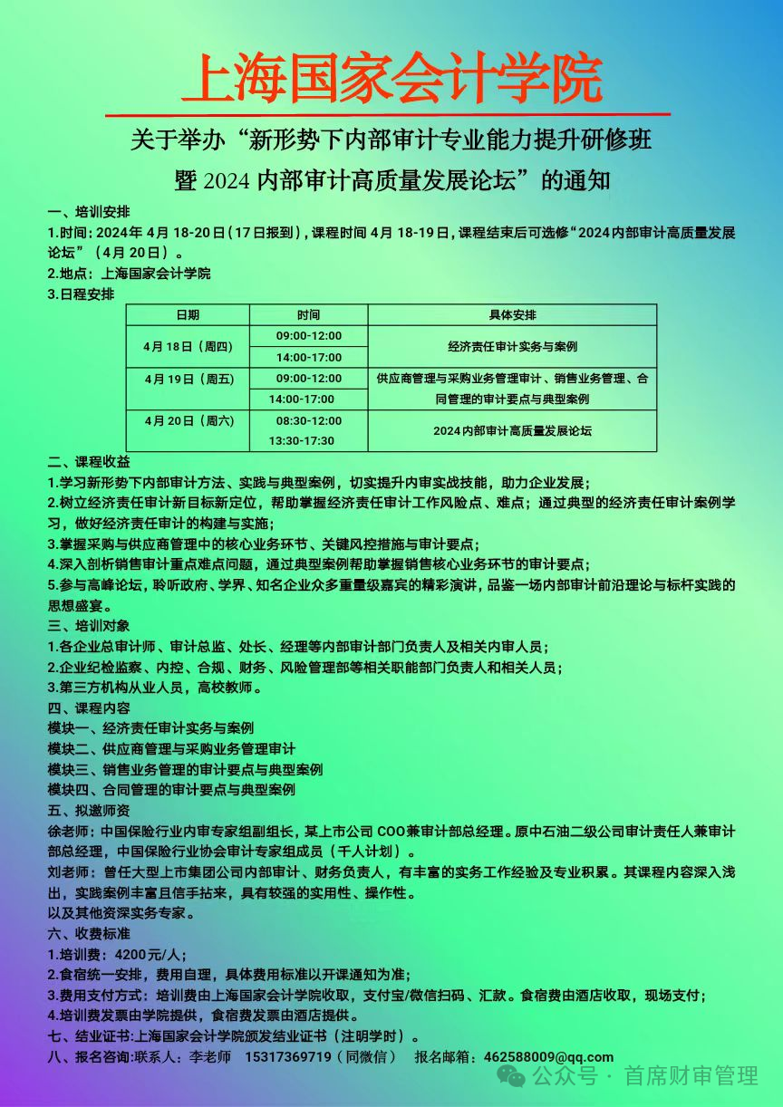 内部审计负责人与后备人才岗位能力提升高级研修班暨2024内部审计高质量发展论坛