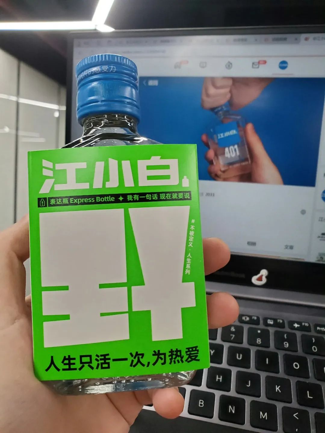 如果不是愚人节,江小白官博推动的这条内容,可能我们就信了。在这组微博中,配图可谓情怀满满,特别是酒瓶上的文案“人生只活一次,为热爱”,产生了喝酒与上班,只为热爱的联想,简单又纯粹。