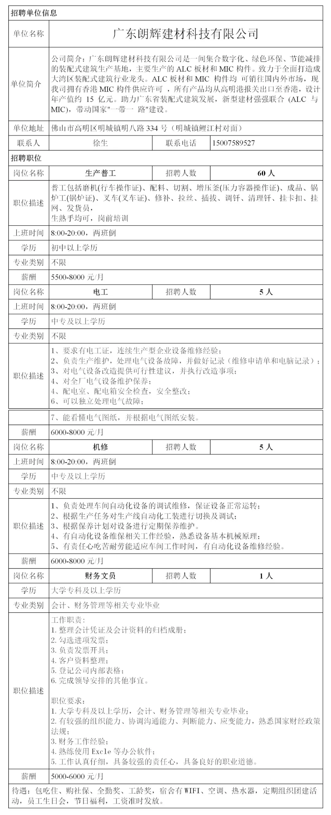 【佛山招聘工作】精选佛山招聘信息,请注意招聘日期,过期不用理会。本招聘信息发布时间:2024.4.8