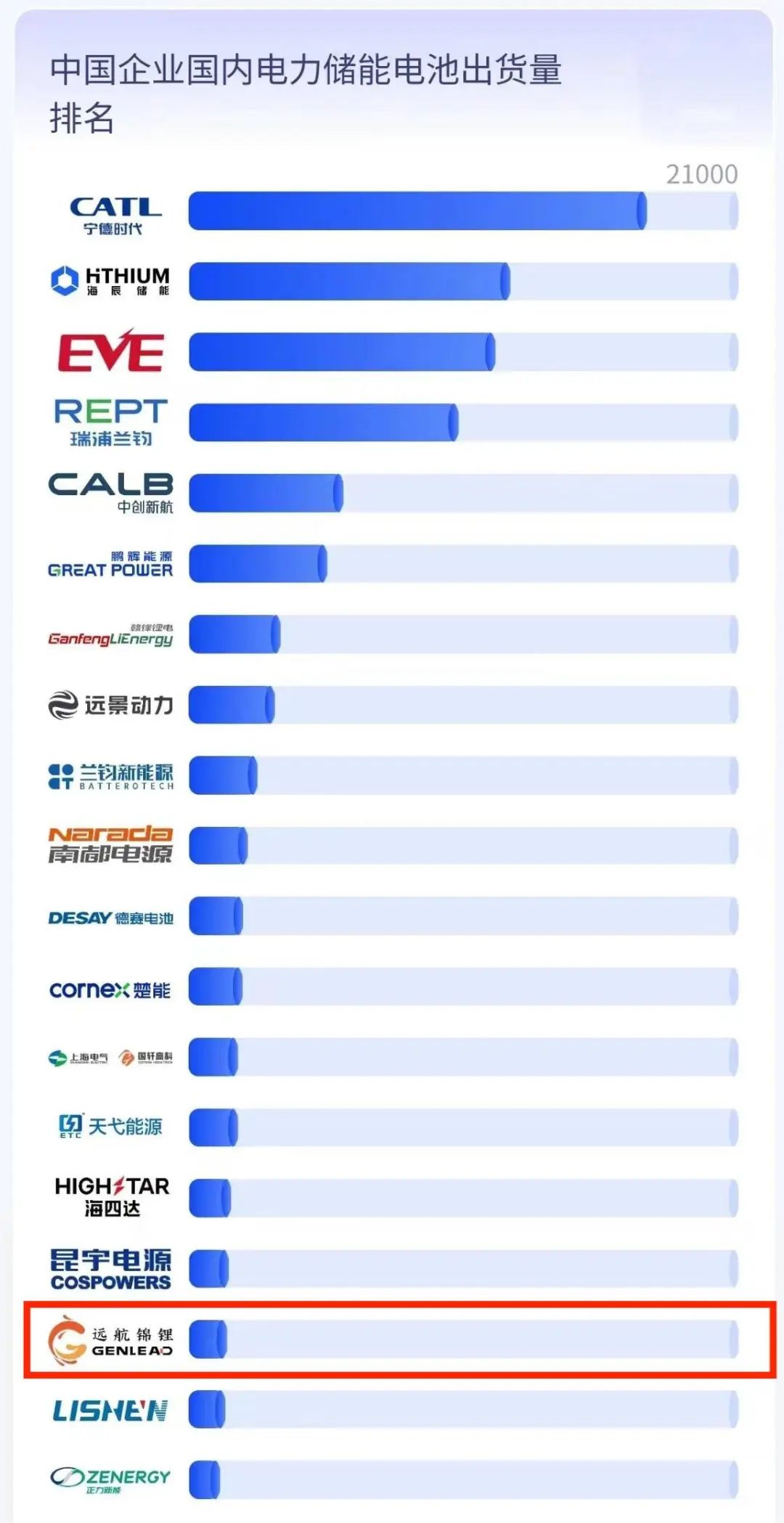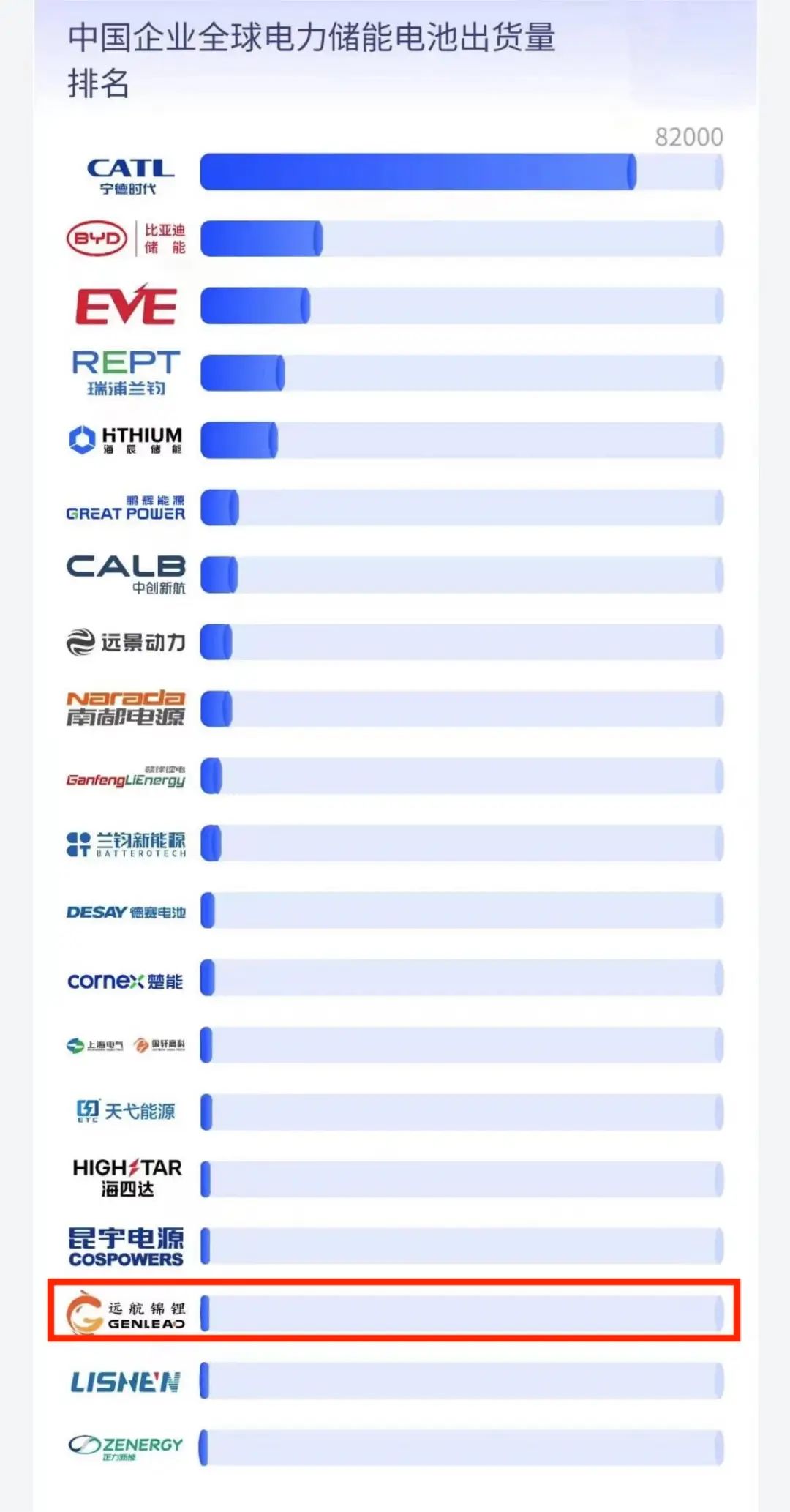 “中国企业全球电力储能电池出货量排名”