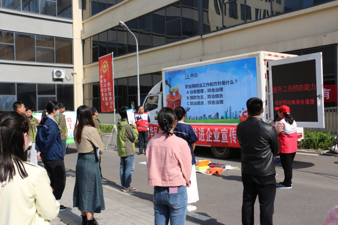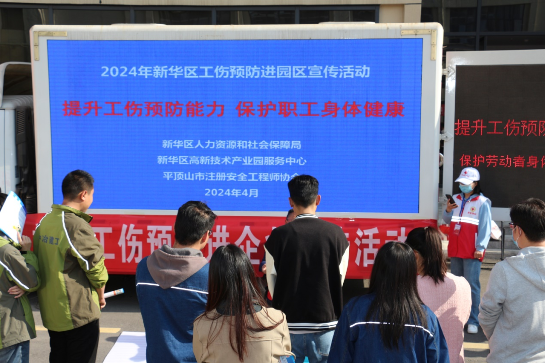 动现场,新华区人社局采用多元化宣传方式,通过户外电子屏、现场宣讲、事故案例分析展板,多样化地帮助企业及职工加强对工伤预防知识、技能、政策、事故案例的认识,引导企业重视工伤预防工