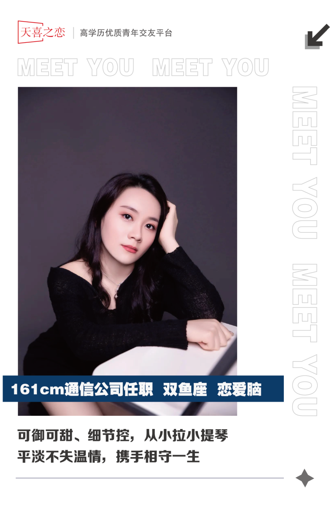 天喜已对嘉宾身份和学历进行核实,但性格、品质、财产、个人经历等信息均由嘉宾个人提供,平台不承诺前述信息真实性,请大家在实际交流中具体观察,谨慎判断。