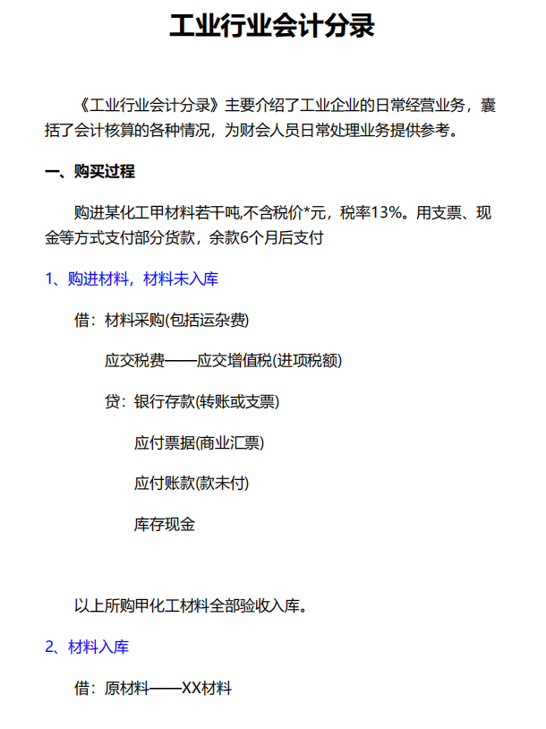 工业行业会计分录