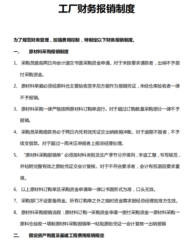 工厂财务报销制度