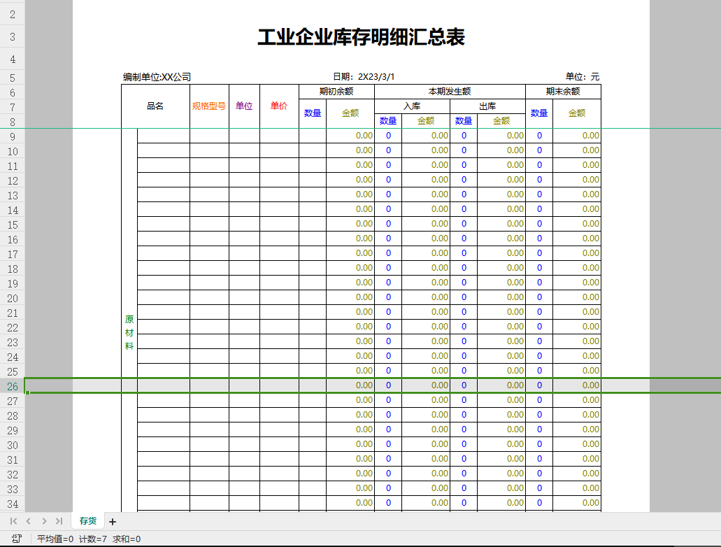 工业企业库存明细汇总表