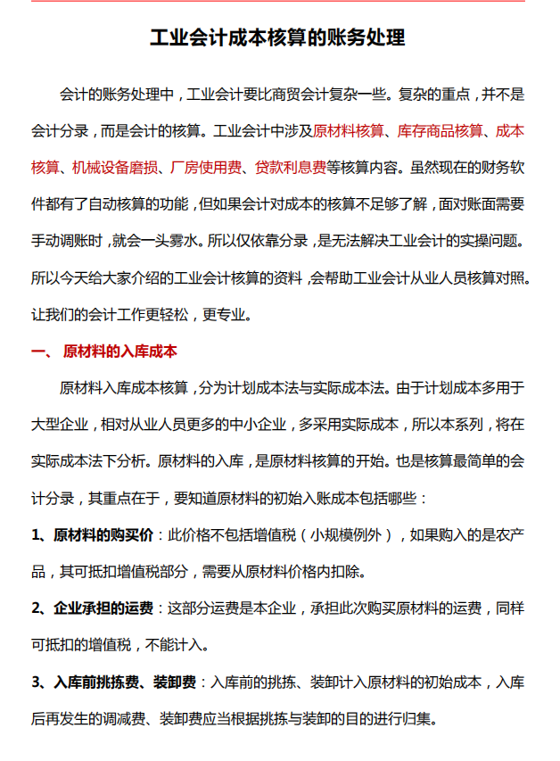 工业会计成本核算的账务处理