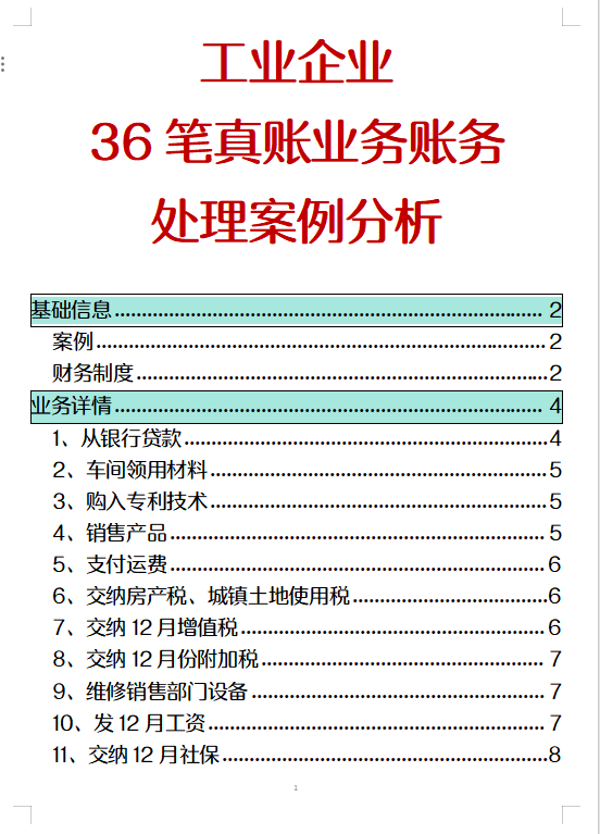 工业企业36笔账务处理案例分析