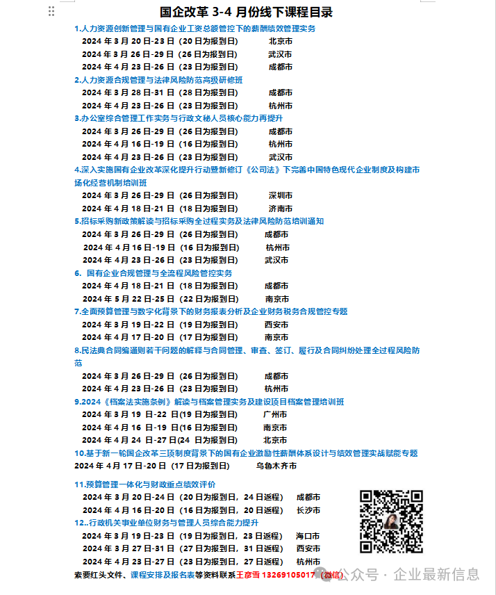 如何增强和激发国有企业活力?如何推动结构调整与资源优化配置及重点领域企业并购重组,如何从“管企业”转向“管资本”?国有独资、全资公司与控股、参股公司的治理模式有何不同?为什么要建立外部董事和职业经理人制度?党委会如何融入法人治理结构以及股权激励、整体上市、市场化选人用人机制等都将是本轮国企改革关注重点。为此,“企业最新信息”在线牵头筹建了【小王的国企改革交流】群,群内将不定期分享:国企改革、集团管控、法人治理、三年行动、平台公司转型、片区开发、“十四五”、国企党建、人力资源体系搭建以及政策汇编等专家解读、案例分析、培训信息等资料。向天南海北的国资监管机构、央企、国企的业内朋友开发,欢迎大家入群交流。