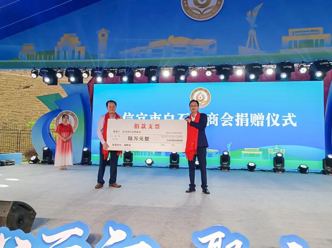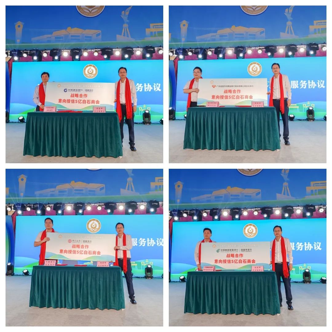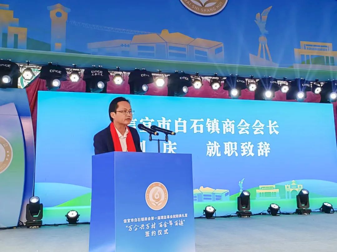 李庆川、郭亿万、郑茂杰先后致辞,希望白石镇商会要凝聚商界力量,发挥桥梁纽带作用,踔厉奋发,推动镇域经济发展,尤其要对标省委年初高质量发展大会既定的目标任务,紧密围绕“百千万工程”“绿美广东”,聚焦因地制宜发展新质生产力的重要要求,结合发展实际,积极推进“百千万工程”建设、产业发展、创文创卫等事业,确保乡村振兴战略及“百千万工程”见行动,出成效。刘庆在就职讲话中表示,对白石未来经济发展充满了期待,将创新服务好会员,并引导会员企业积极履行社会责任,参与到白石镇的乡村振兴各项战略部署中去。在大会的捐赠仪式上,刘庆、梁辉荣、李霖维、梁仁宽等四十多位商会成员积极为商会捐资,共收到会员捐款90多万元,其中梁辉荣向商会捐赠六万元,刘庆捐赠五万元。大会举行了签约仪式,白石镇商会与白石镇政府签订“万企兴万村,百会帮百镇”结对帮扶合作协议书,华瀚国际文化发展公司、深圳市怡通达供应链有限公司、信宜市金巴坑生态农业发展有限公司、信宜市晟世生态农业发展有限公司、信宜市品誉餐饮管理有限公司五家企业进行了投资签约。建设银行、农商行、中国银行、邮储银行4家金融机构与该商会签订金融服务协议,意向授信合计20亿元。白石镇党委主要负责同志在致辞中希望,白石商会会员要以闽商、潮商为榜样,自觉摒弃“小我”的落后思想,树立“大我”胸怀、宏大格局,俗话说“授人玫瑰,手有余香”,我们要做到相互补台,相互托举,相互成就,携手开创白石镇商会“团结进取,奋发向上”的工作新局面。大会还举行字画捐赠仪式,深圳信宜商会、惠州信宜商会等单位和个人向白石商会捐赠了字画,对白石镇商会第一届理监事会就职典礼表示祝贺。大会结束后,出席大会的领导嘉宾还来到商会办公场所举行商会揭牌仪式,出席大会的领导嘉宾为商会牌匾揭幕。当晚,白石商会还举办了一场精彩的文艺演出,吸引大批商会会员和附近群众前来观看。来源:信宜发布
