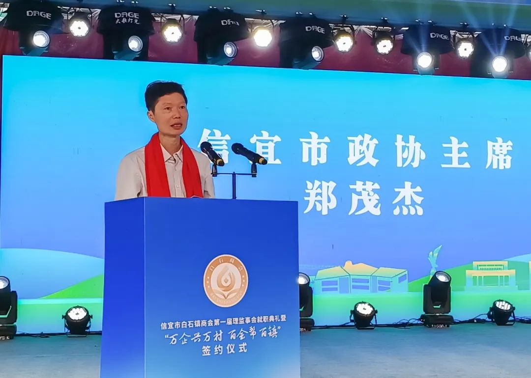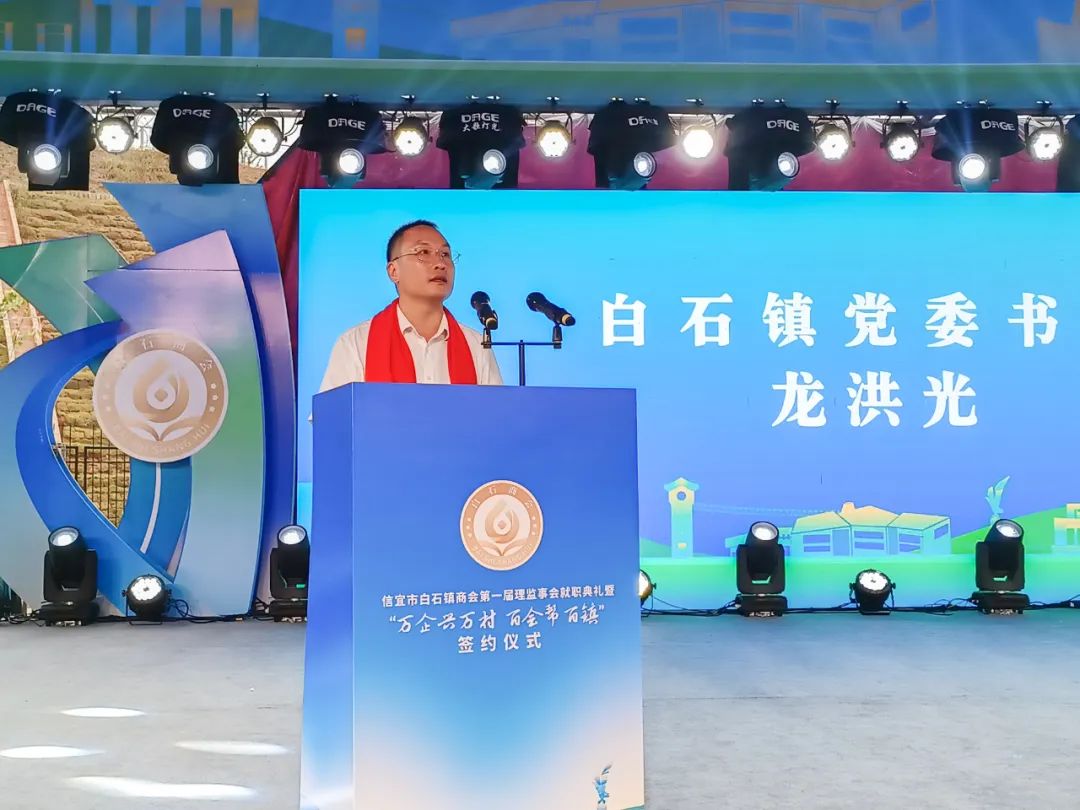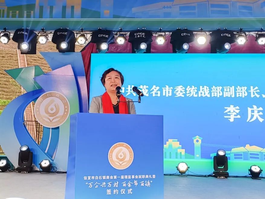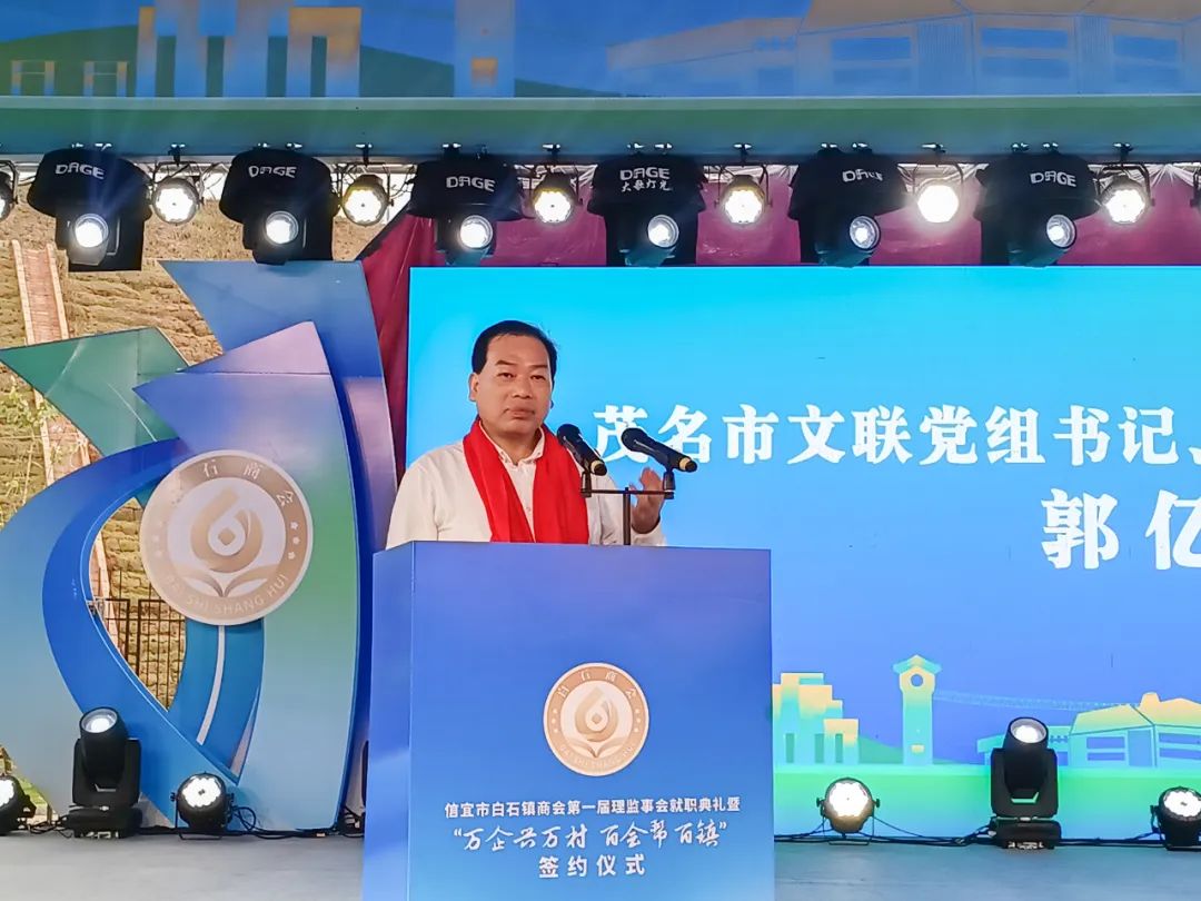 茂名市委统战部副部长、茂名市工商联党组书记李庆川,茂名市文联主席郭亿万,我市政协主席郑茂杰、副主席刘佩盛以及市委统战部、市工商联相关负责人、白石镇党政领导班子出席就职典礼暨签约仪式,祝贺“万企兴万村 百会帮百镇”项目成功签约。