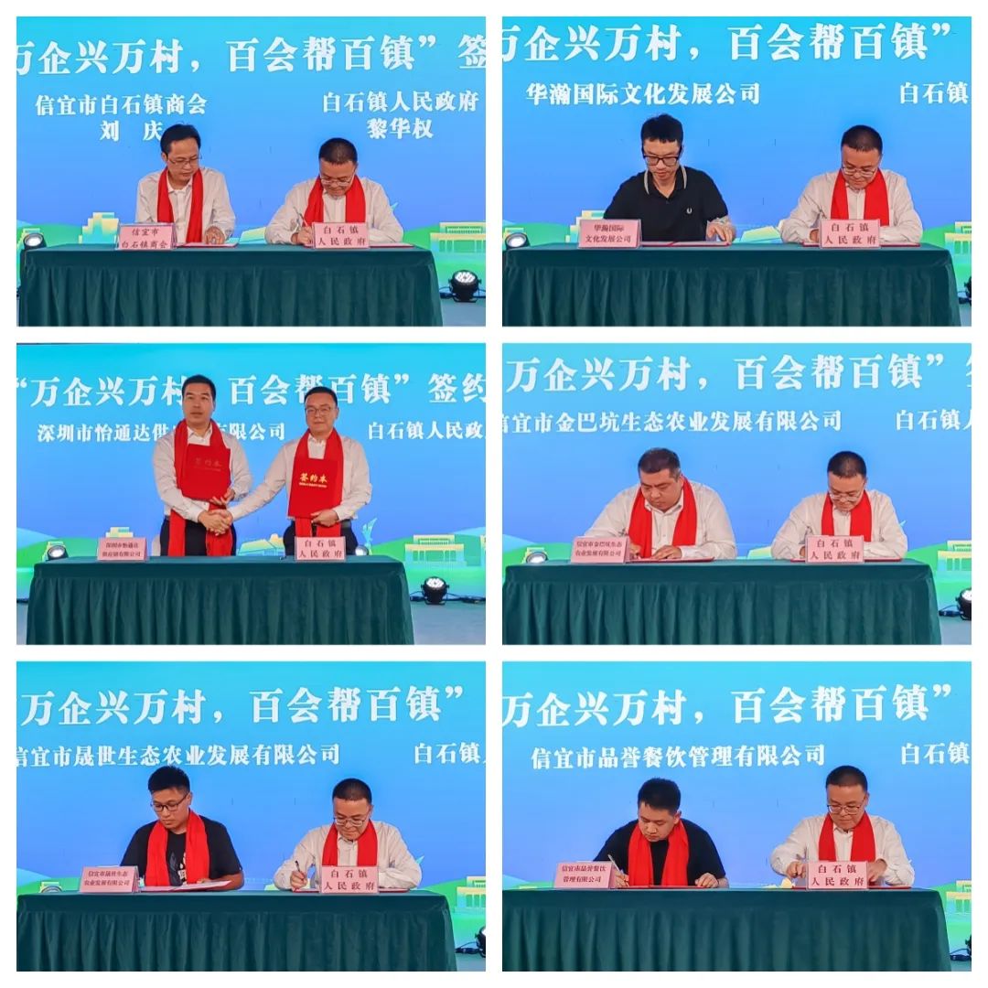 4月6日,白石镇商会第一届理监事会就职典礼暨“万企兴万村 百会帮百镇”签约仪式在三华李主题公园北停车区举行,该商会与白石镇政府签约5个工农业项目。