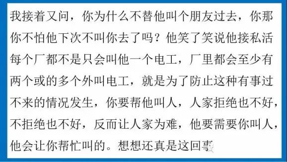 所以,不是每个电工都能在清闲时间接到私活,电工干私活,不是单凭技术就能有钱赚,智商情商都要跟得上,今天的门道,你看懂了么?