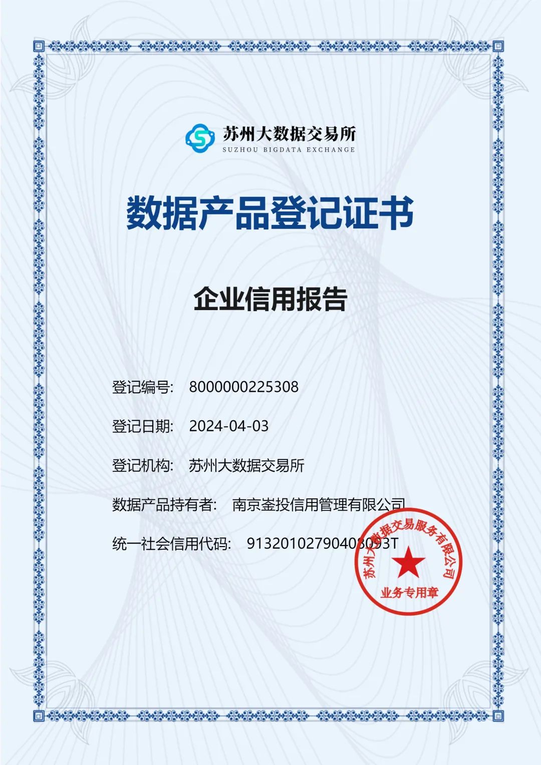 在数字化浪潮的推动下,数据已经成为驱动企业发展的关键要素,其重要性不断攀升。南京崟投信用管理有限公司紧跟数据发展趋势,专注于运用大数据提高信用评估的准确性与效率。公司深入分析各类信用数据,为客户提供精准的市场决策支持,凭借在信用管理领域的专业积累和持续努力,其企业信用报告业务成功获得了苏州大数据交易所颁发的数据产品登记证书,证书编号为8000000225308。这一证书的获得,不仅凸显了公司在企业信用报告业务领域的深厚底蕴和专业实力,更体现了公司对提升数据产品服务的不懈追求和坚定决心。