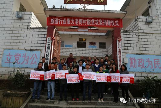 2月18日,我县举行旅游行业聚力老博村脱贫攻坚捐赠仪式。宏诚建筑有限公司红河分公司、京骏建筑有限公司、城南建筑有限公司、建宇建设咨询监理有限公司、创霖设计公司、国泰工程管理咨询有限公司、利明涛土地评估有限公司、蓝图测绘有限公司、红河假日旅行社的各位老总,以及县旅游局、甲寅镇的领导和老博村的干部及部分群众代表等出席捐赠仪式。