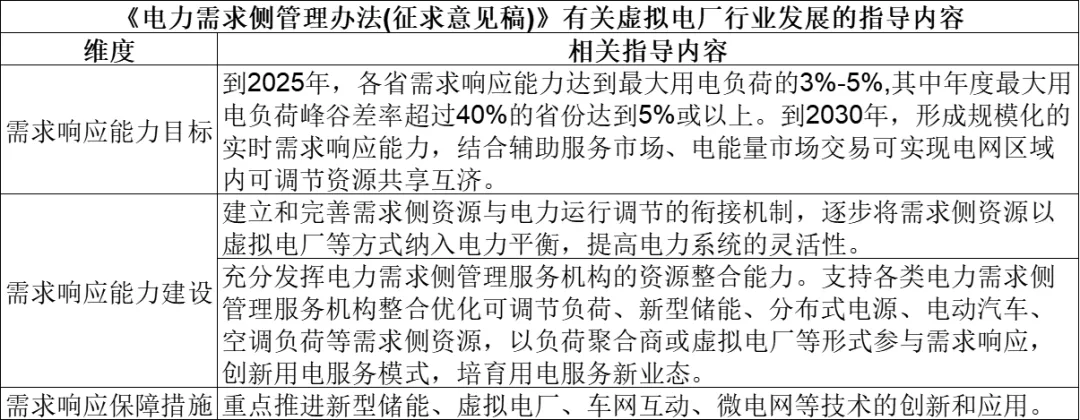 2023年5月,国家发改委发布《电力需求侧管理办法(征求意见稿)》,对需求侧响应能力的量化目标进行加码,提出“到2025年,各省需求响应能力达到最大用电负荷的3%-5%,其中年度最大用电负荷峰谷差率超过40%的省份达到5%或以上”,并且强调将需求侧资源以虚拟电厂等方式纳入电力平衡、以负荷聚合商或虚拟电厂等形式参与需求响应,将带动虚拟电厂行业发展。