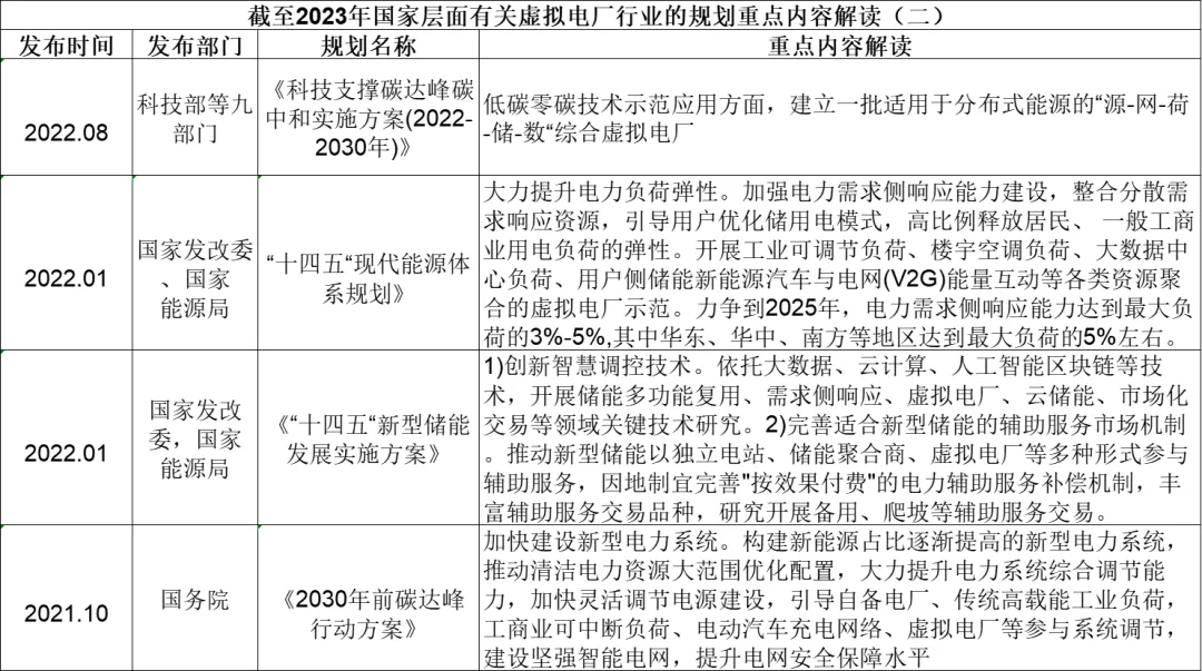 国家发改委、国家能源局发布《“十四五”现代能源体系规划》,强调加强电力需求侧响应能力建设,力争到2025年,电力需求侧响应能力达到最大负荷的3%-5%;2023年,国家发改委发布《电力需求侧管理办法(征求意见稿)》,加码电力需求响应能力的量化目标,重点发挥虚拟电厂需求响应的能力。