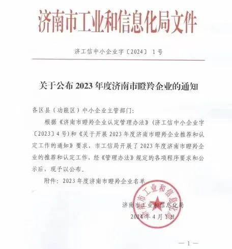 近日,济南市工业和信息化局公示了2023年度济南市瞪羚企业名单,济南槐荫经济开发区8家企业入选。其中,德迈国际信息产业园内济南中威检测技术有限公司、山东鸿泽自动化技术有限公司两家企业入选。