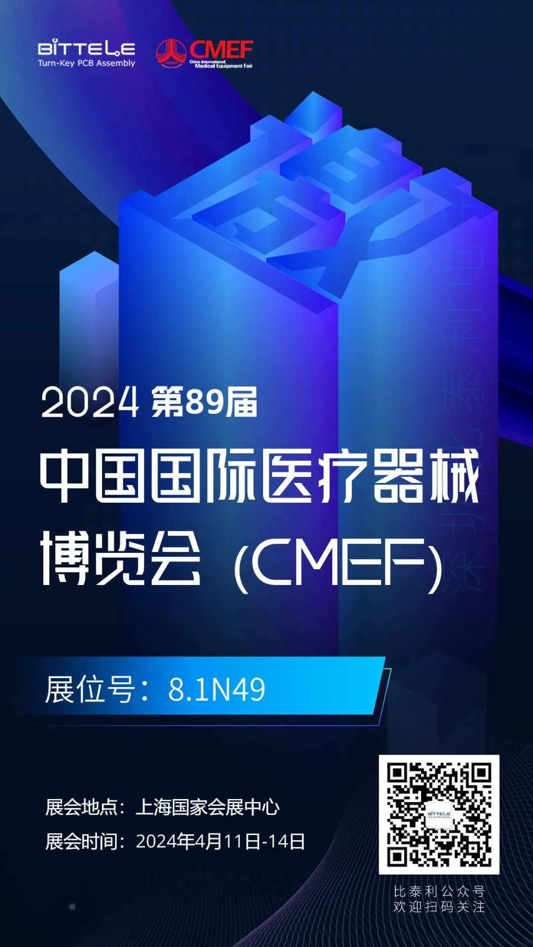 作为专注医疗PCBA打样中小批量一站式服务企业,我们深圳市比泰利电子将在此次展会上展示专业实力与优质服务,并诚挚邀请医疗行业的同仁们莅临我们的展位(8.1N49)沟通交流。