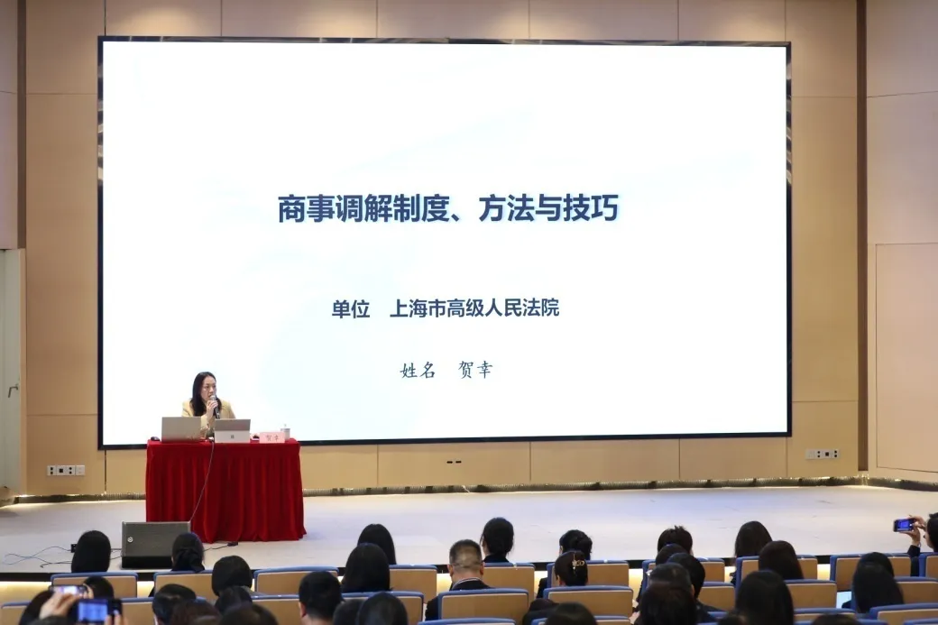 市高级人民法院商事庭三级高级法官贺幸讲解商事调解制度、方法与技巧等。