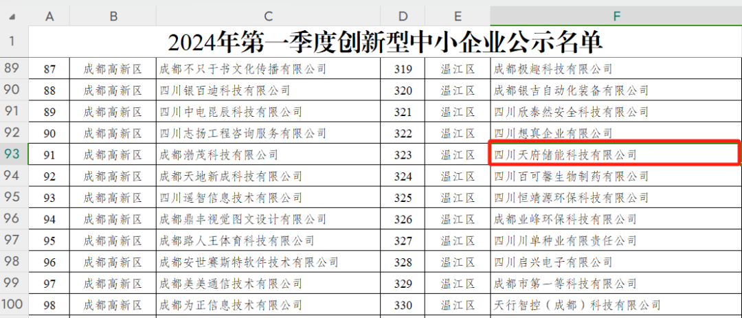 近日,根据成都市经济和信息化局于4月3日公示的信息,四川天府储能科技有限公司经过严格审核,成功被评定为成都市2024年第一季度“创新型中小企业”。这充分展示了公司在技术创新、产品研发和市场竞争力方面的卓越表现。
