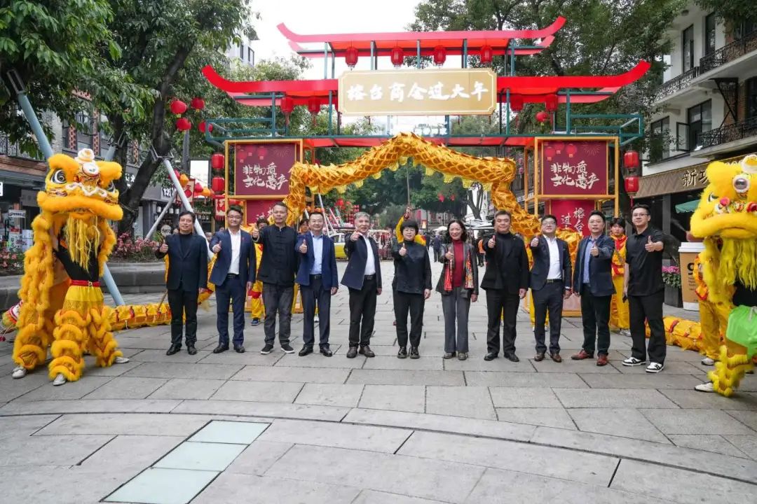 1月31日,“龙腾上下杭 榕台商会过大年”——福州跨境电商年货节暨非遗老字号年货展活动在上下杭历史文化街区金银里隆重举行。福州市委常委、宣传部部长、统战部部长、一级巡视员陆菁,福州市人民政府副市长、市工商联主席林治良,市委统战部副部长、市工商联党组书记陈锦,市委台港澳办主任邓达木,福州古厝集团有限公司总经理郑嘉贤,市商务局二级调研员黄武闽,台江区委常委、统战部部长郑炳锋,台江区副区长苏林,福州旅游职业中专学校党总支书记杨松等领导嘉宾、百家榕台商(协)会代表、非遗传承代表、市民游客等近千人参加活动。这次年货节是推动传统商贸业转型升级的有益探索,也是创新消费模式、释放消费潜能的有力之举,更是一场有声有色、年味十足的文化盛宴。