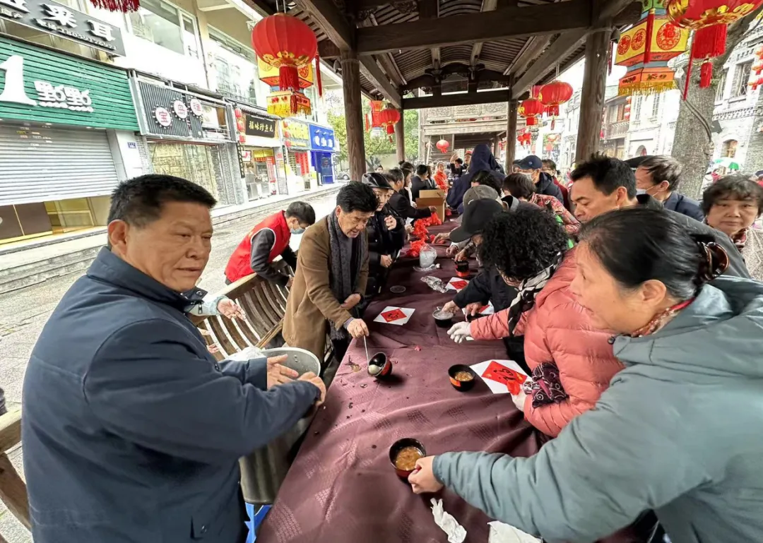 3月9日,龙腾坊巷 福泽绵长--2024年“我们的节日·拗九”鼓楼区主场活动南街专场活动在三坊七巷圆满举行。拗九节作为福州的孝顺之节,不仅承载着深厚的地方文化,更传递着崇高的道德价值。市中小微企业商会会长林帆、福建省收藏家协会荣誉会长周野、中传华夏国际文旅发展集团(福建)有限公司福建中心主任林芬、美国福建联会总会荣誉主席 中国福字展组委会主任李贵明、美国华人社团联合总会常务副主席李培华、澳大利亚澳中国际商会执行会长吴方、隆福记非遗品牌第三代传承人林伟、福建省旗袍协会副会长和沐雅有约生活美学院创始人黄雅平等企业家在现场为市民朋友们送上一碗碗热气腾腾的粥。主办方不仅向游客免费赠送拗九粥,还为6旬以上的长者准备了太平面蛋。此外还提供了义诊服务,并发放了拗九粥材料包。同时,现场还设置了拗九文化展,展示了拗九粥的食材和由来,让游客在品尝美食的同时,也能了解到这一传统节日的文化内涵。