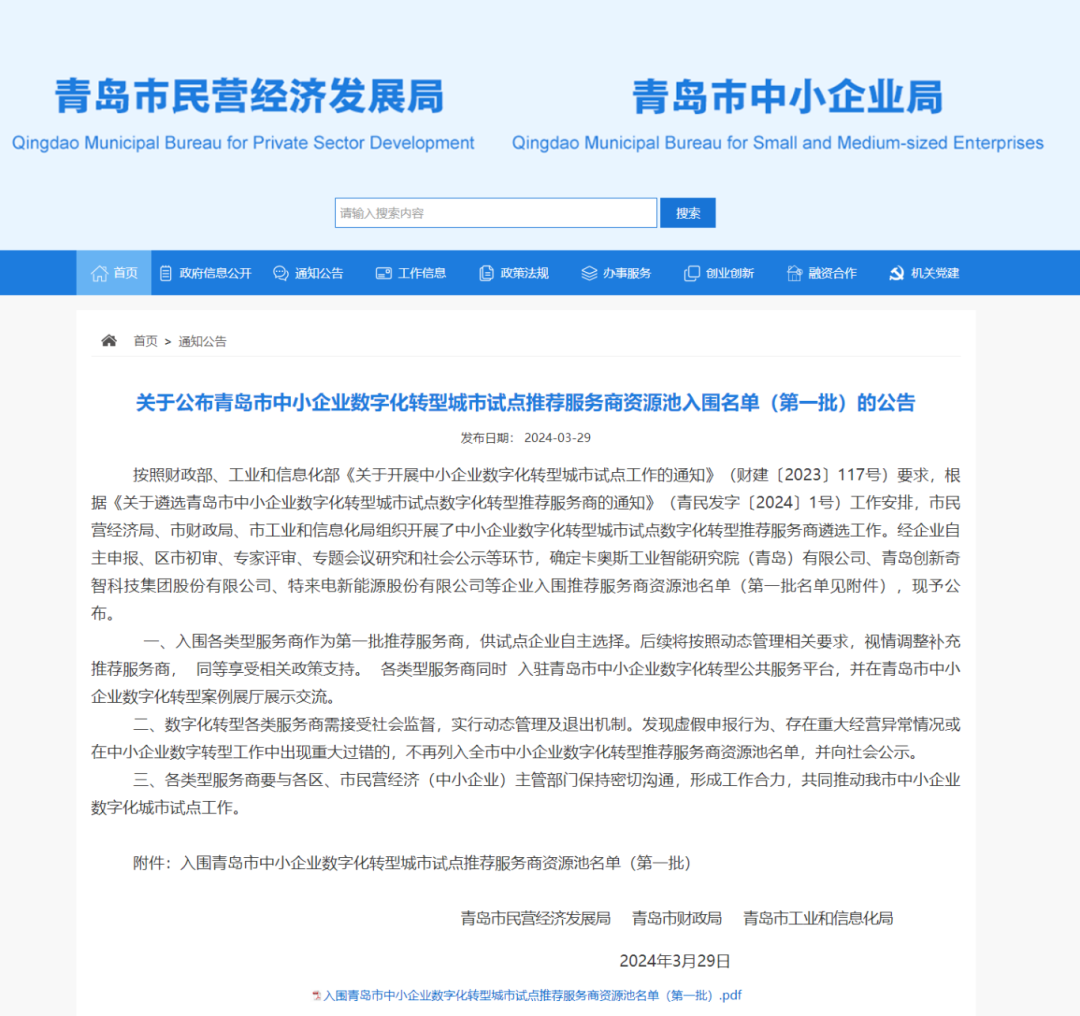青岛市中小企业数字化转型试点城市数字化服务商实行动态管理及退出机制,市民营经济局将通过“青岛市中小企业数字化转型公共服务平台”对服务商日常档案维护管理、服务成效、企业项目实施成效等情况进行管理,组织专家或委托第三方对入选服务商进行评价,并根据评价结果进行动态调整和补充,确保服务质量。市民营经济局及各区、市民营经济(中小企业)主管部门将加强对入选服务商的宣传推广和政策支持,通过培训、观摩和供需对接会等多种形式,合力促成推荐服务商与中小企业数字化转型城市试点企业的合作。