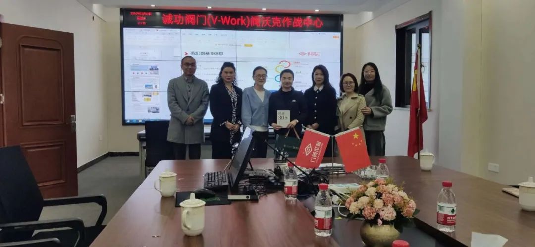 在随后进行的座谈交流中,董事长陈双河给大家分享了创业历程及心得感悟,常务副总冯涛给大家分享了诚功阀门智改数转实践,特别介绍了自主知识产权的阀沃克(V-Work)智能制造系统。