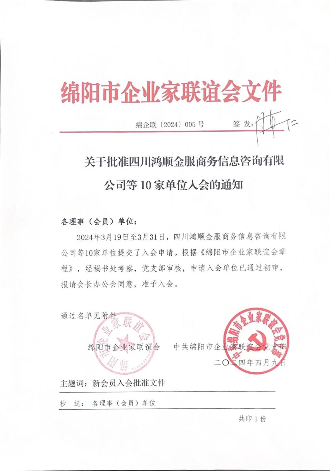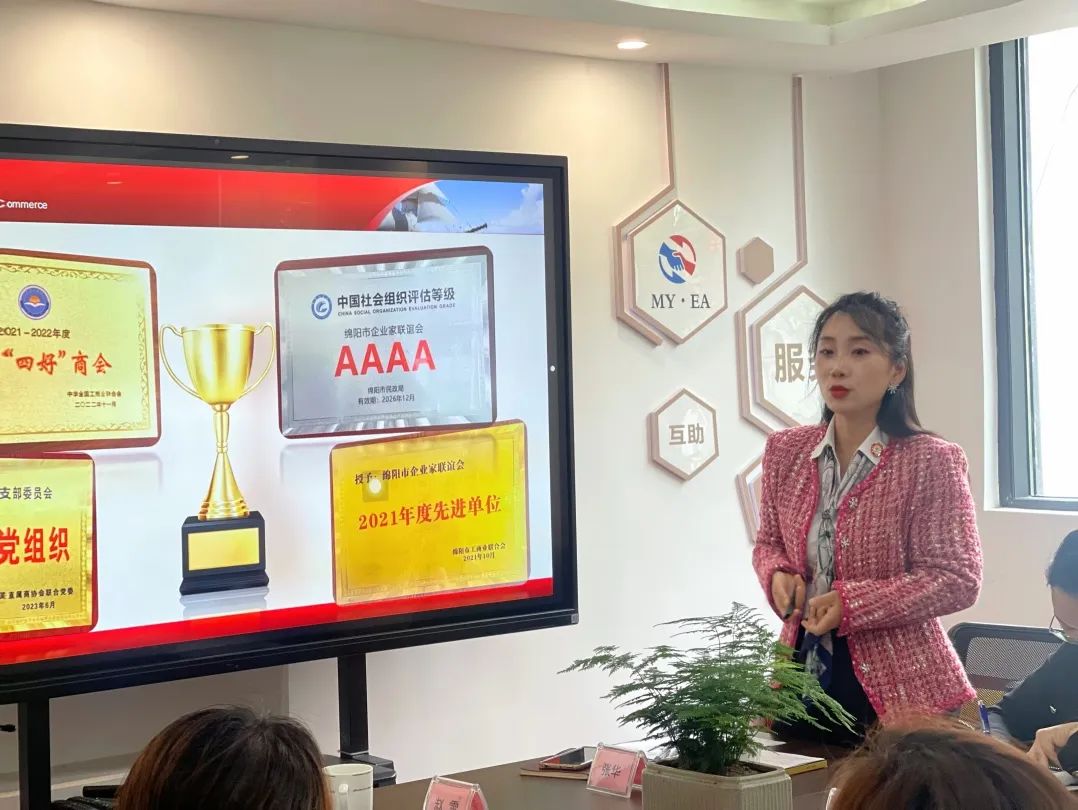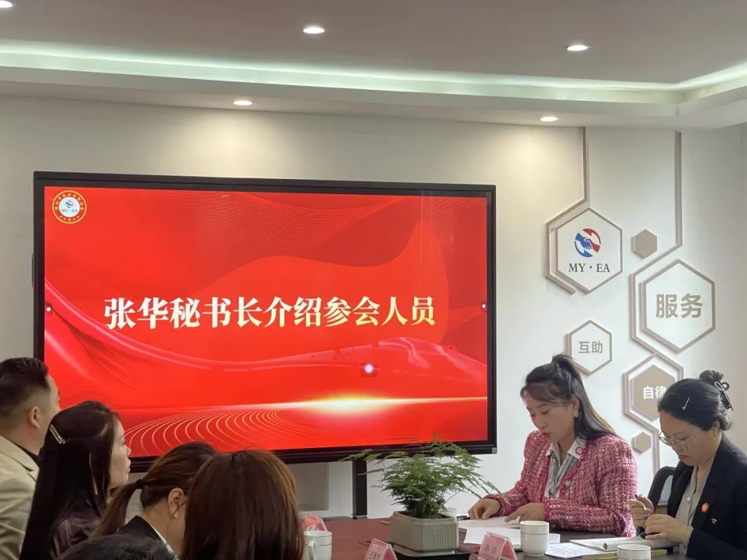 2024年4月9日下午,绵阳市企业家联谊会举行三月新入会授牌仪式暨班子成员会议。会长陈仁,常务副会长、商务中心主任余绍华,常务副会长、新媒体专委会主任李勇,常务副会长、大健康专委会主任王超龙,副会长、文体联谊中心主任蒋平,党支部书记徐尚冰,常务副会长李佳、李晓蓉、孙戎,副会长、建筑业专委会代表罗亚军,副会长陈小艳、刘应琳、陈倩茜、周辞涵,副会长单位代表涂良斌,法律维权中心代表唐莎娜,乡村振兴专委会代表嵇泽芝,会员王素芳、赵雷,会员单位代表赵元旭、刘军,秘书长张华,法律维权部部长三郎拜让,秘书处干事等30余人参与本次会议。