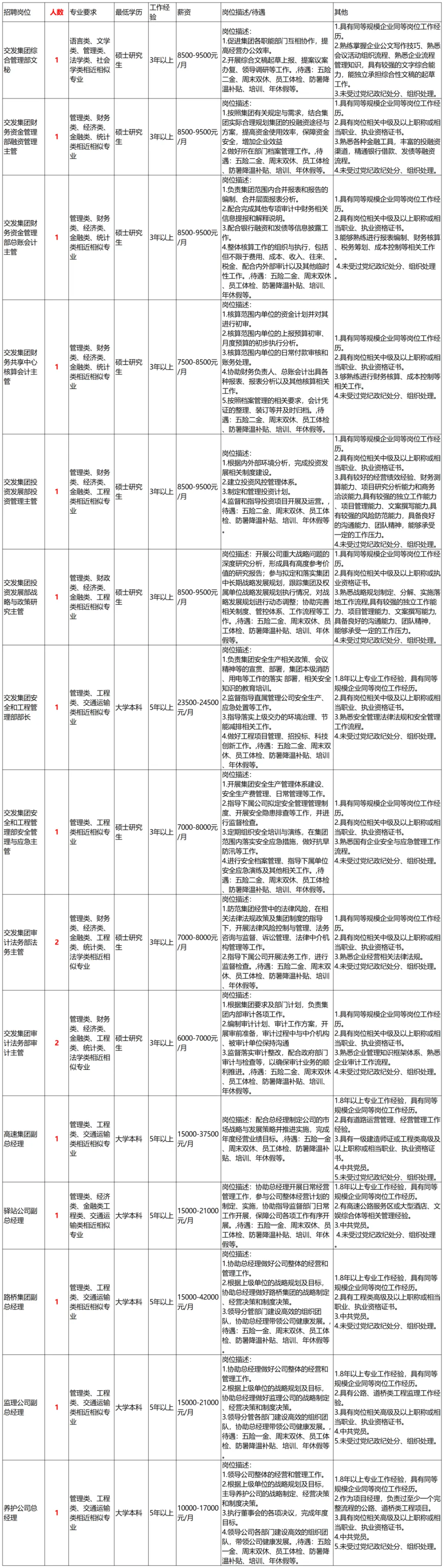 青岛交通发展集团有限公司招聘计划公告